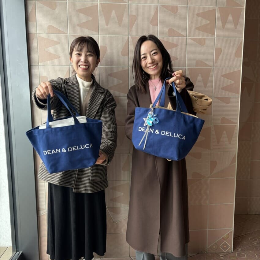 最後は3ショット、そしてゆかりんごちゃんとDEAN&DELUCAのホリデーチャリティートート(トートについてのゆかりんごちゃんのブログはこちら♡)のお揃いショットをさきちゃんに撮ってもらい、2025年の100人隊デートおさめとなりました♪