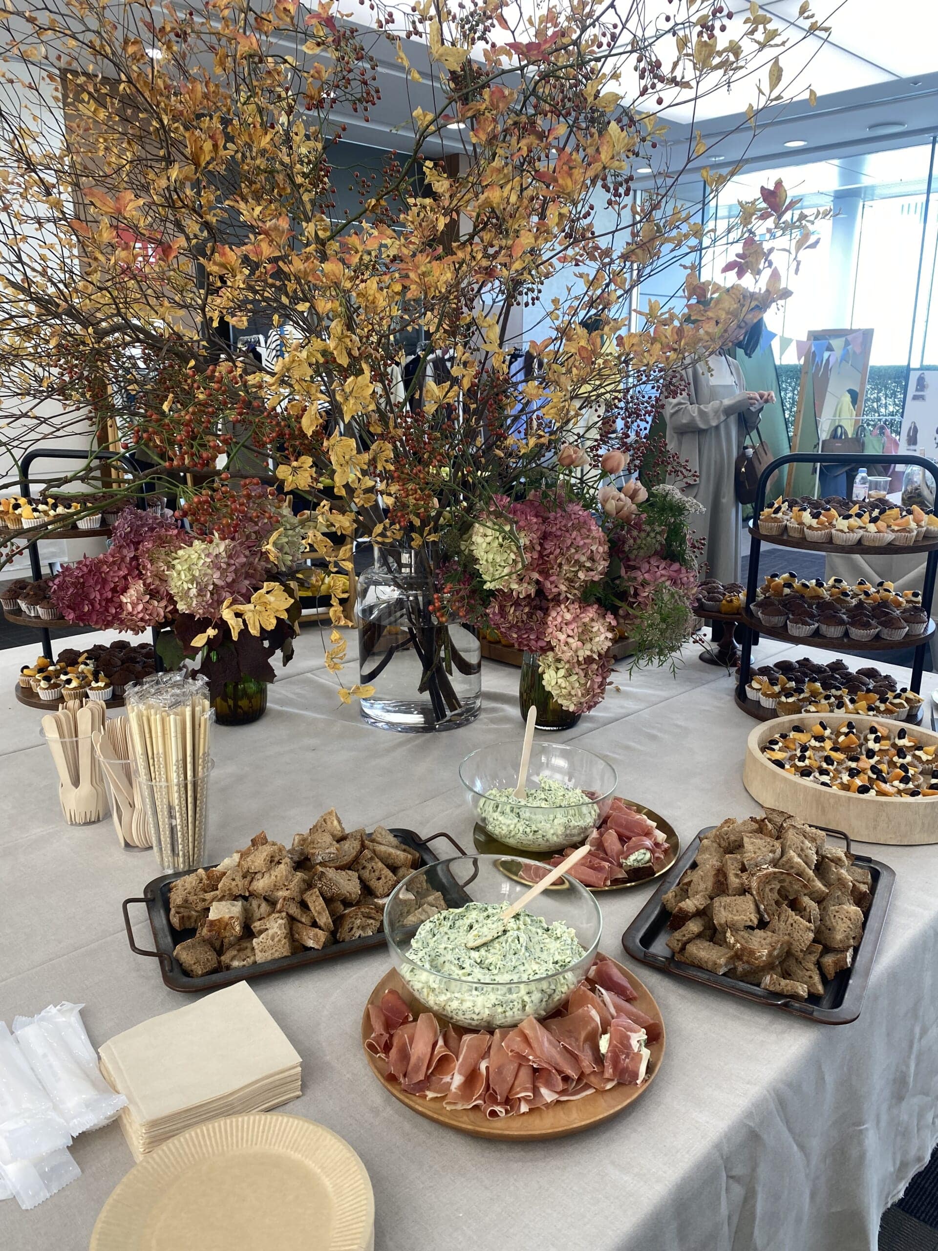 今年のケータリング、、、!タコスやオープンサンドなど自分好みにトッピングできるようにしてくださっていて。デザートもとても美味しそうでした♡