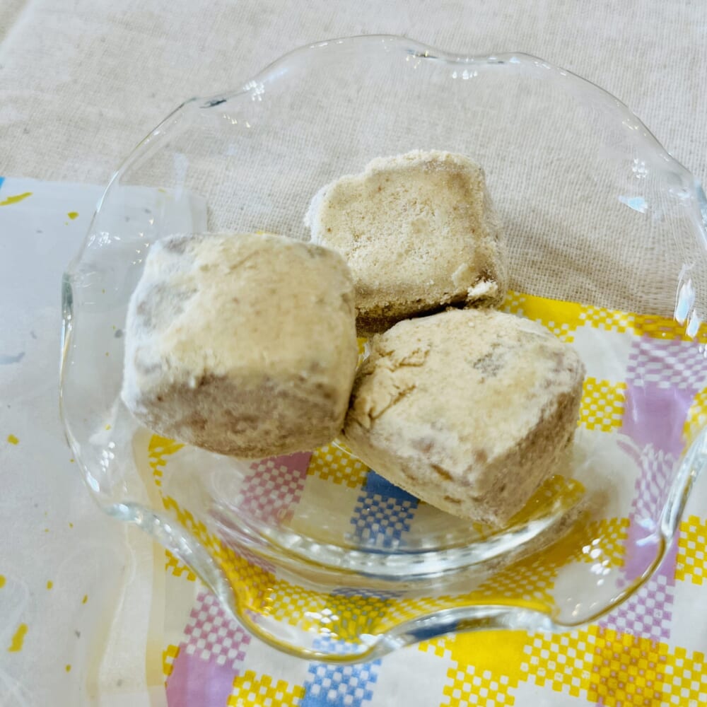 スノーボールやボルボロンと呼ばれるような洋菓子が大好きなんですが、これはその和のバージョンとでも言いましょうか。和三盆がお菓子に纏うと、ぐっと優しい口溶けに変化して美味しくなるな…と噛み締めました。