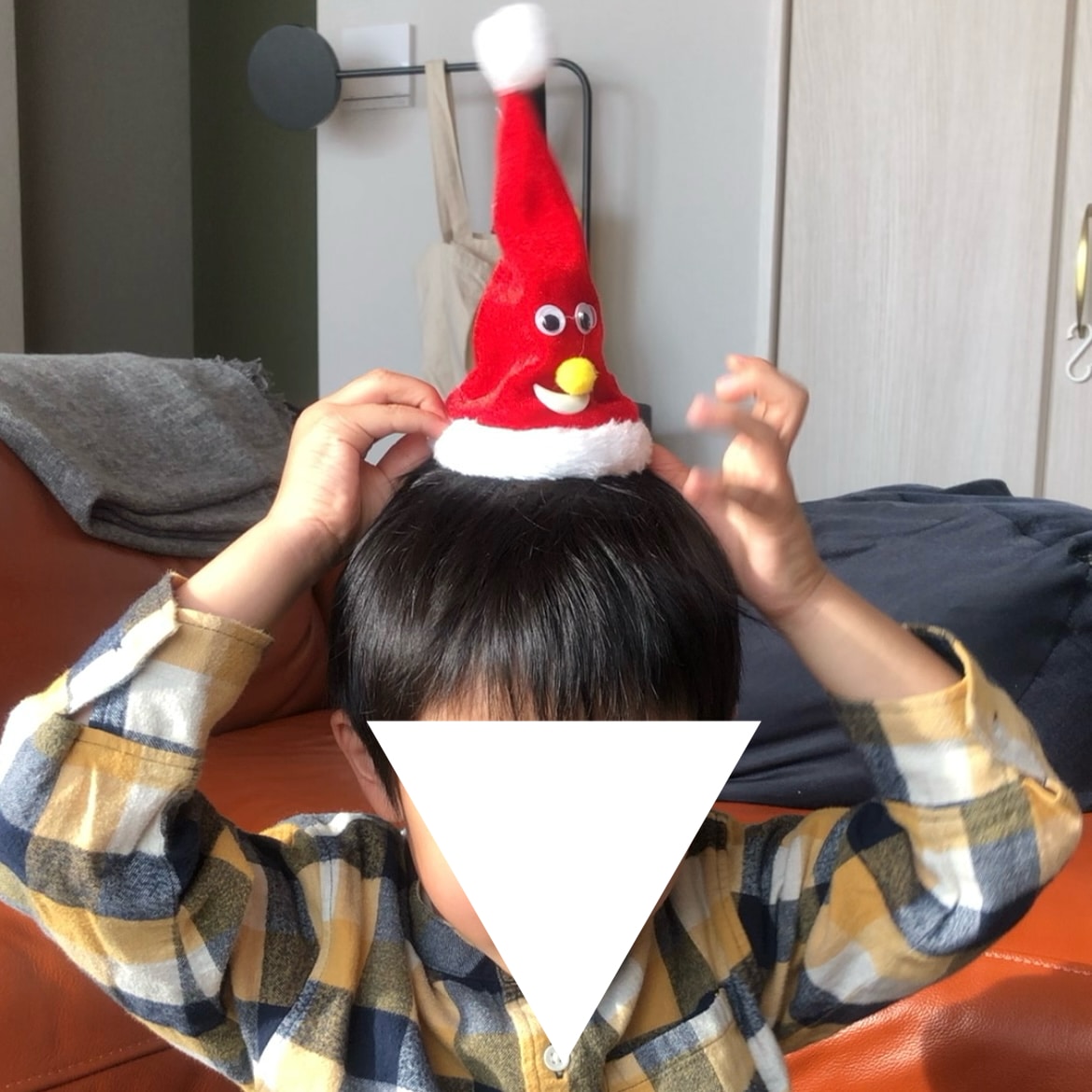 3年前、息子は年少さんの4歳。ツリーに飾るものをお願いって言ってるのに、スイッチオンするとダンシング&シンギングするクリスマス帽をご希望・・・。頭に載せてたっけ。