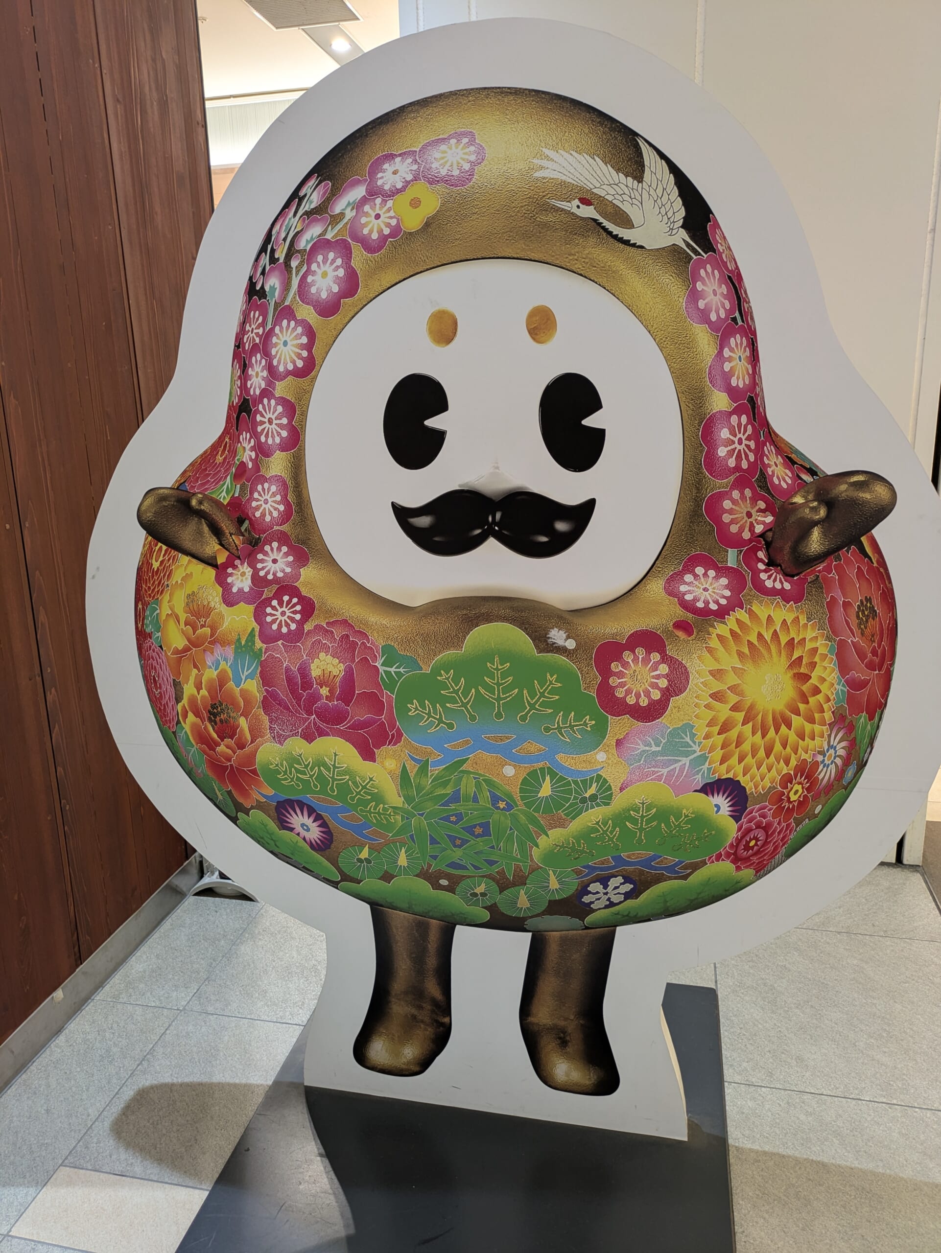 「ひゃくまんさん」は、石川県の観光PRマスコットキャラクターで、郷土玩具の「加賀八幡起上り」をモチーフにしており、石川県の伝統工芸品や観光資源が全身に施された豪華絢爛なデザインが特徴です