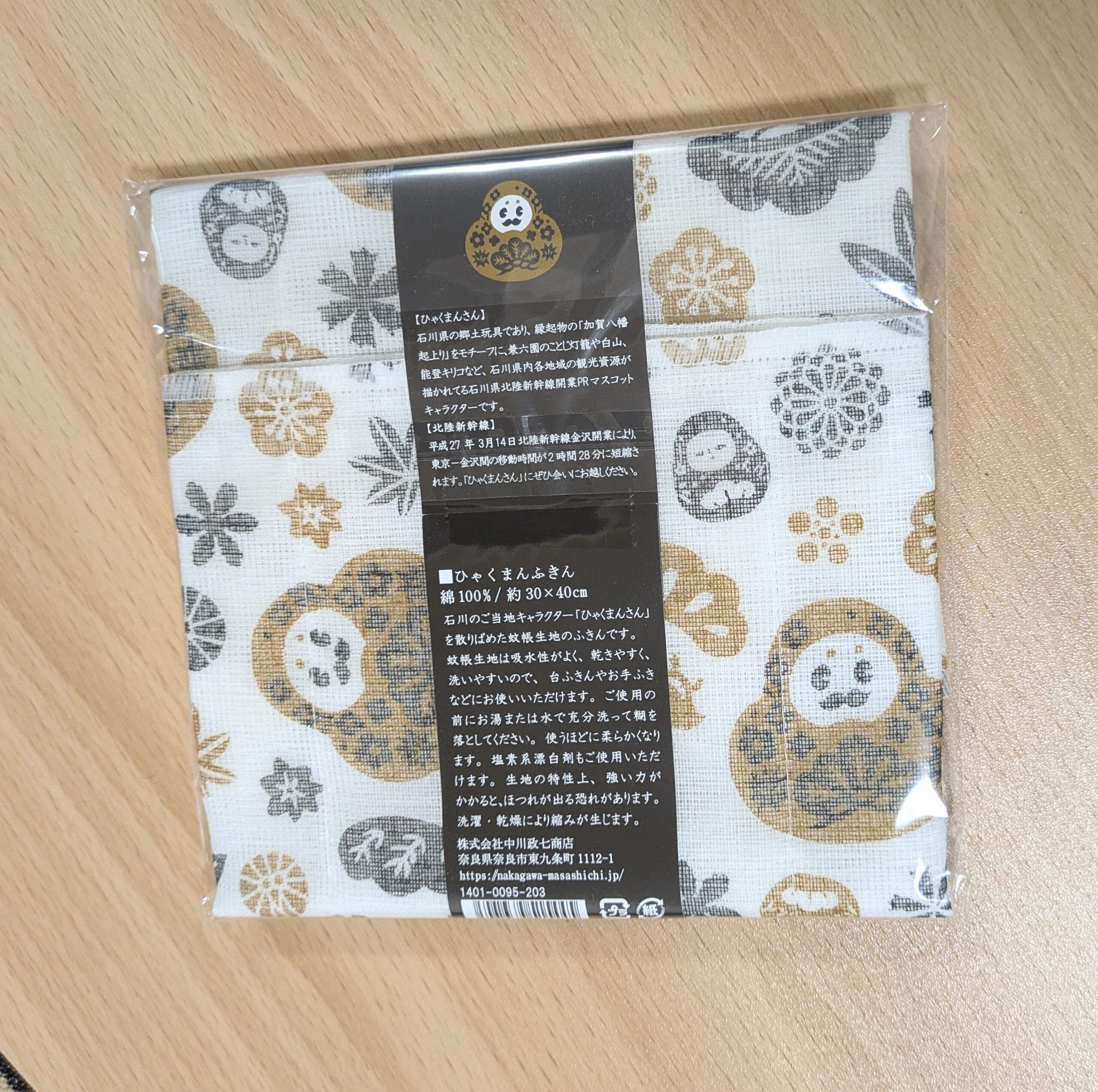 石川県が誇るマスコットキャラクター、ひゃくまんさんと中川政七商品のコラボふきんです