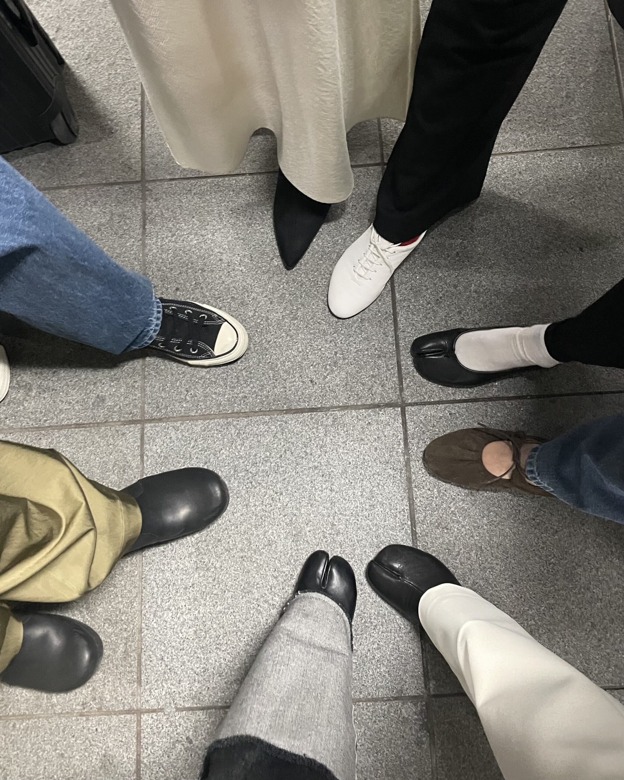 そんなこんなでしだいに集まったこばんさん、なっちん、たこやきちゃんと、合流できたリリオちゃんとみんなで100人隊恒例(?)のきょうの足元カット。こばんさんとの足袋おそろがうれしくて足近め😂