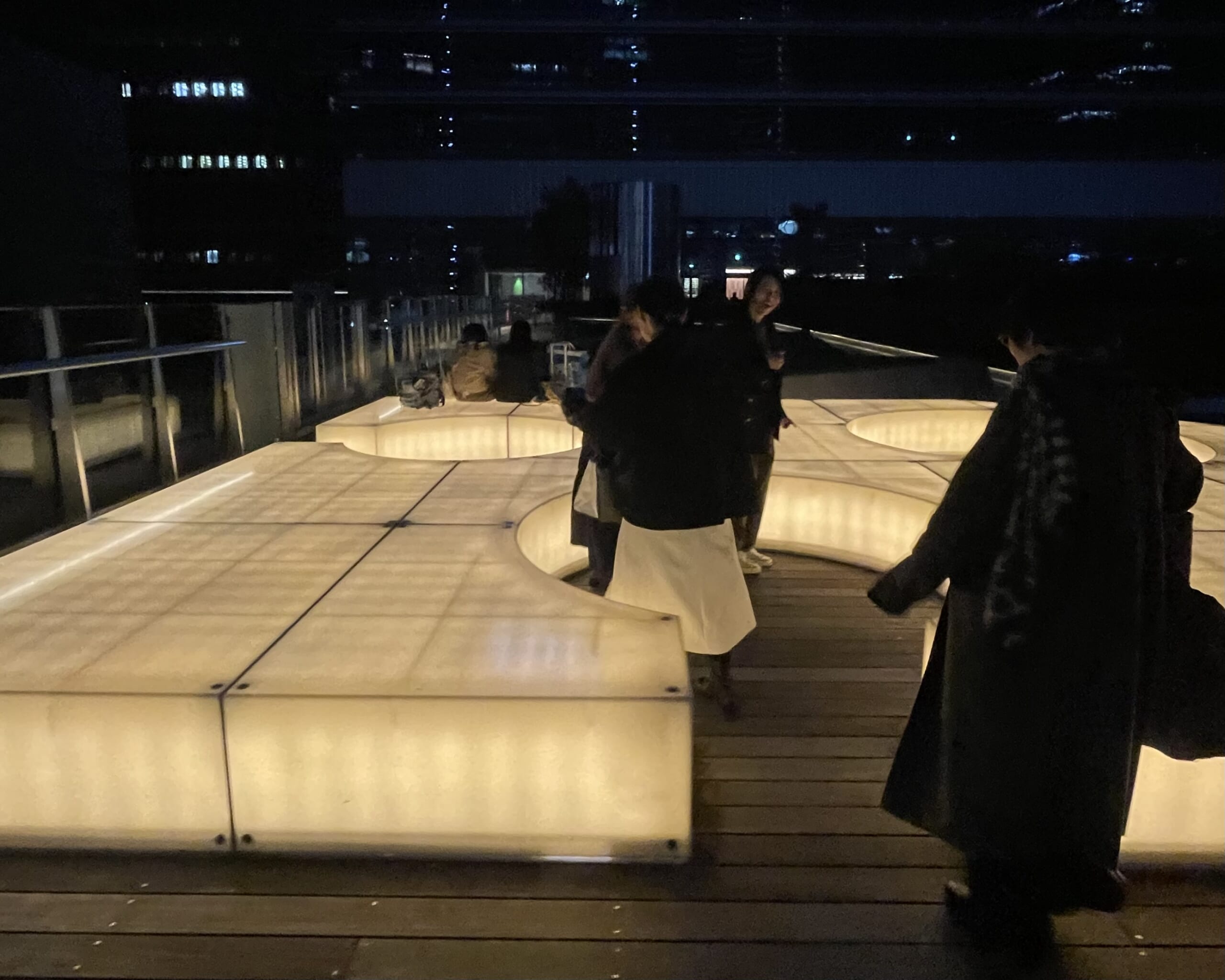 みんなにバイバイを告げ、次なる3次会は・・・と居場所を求めてウロウロする8名😆(キキさん、シモマユちゃん、chiyuちゃん、マルちゃん、ちひろちゃん、あきさん、リリオちゃんとわたし)。何軒ものお店にフラれ、行き着いた先はKITTEの屋上庭園。