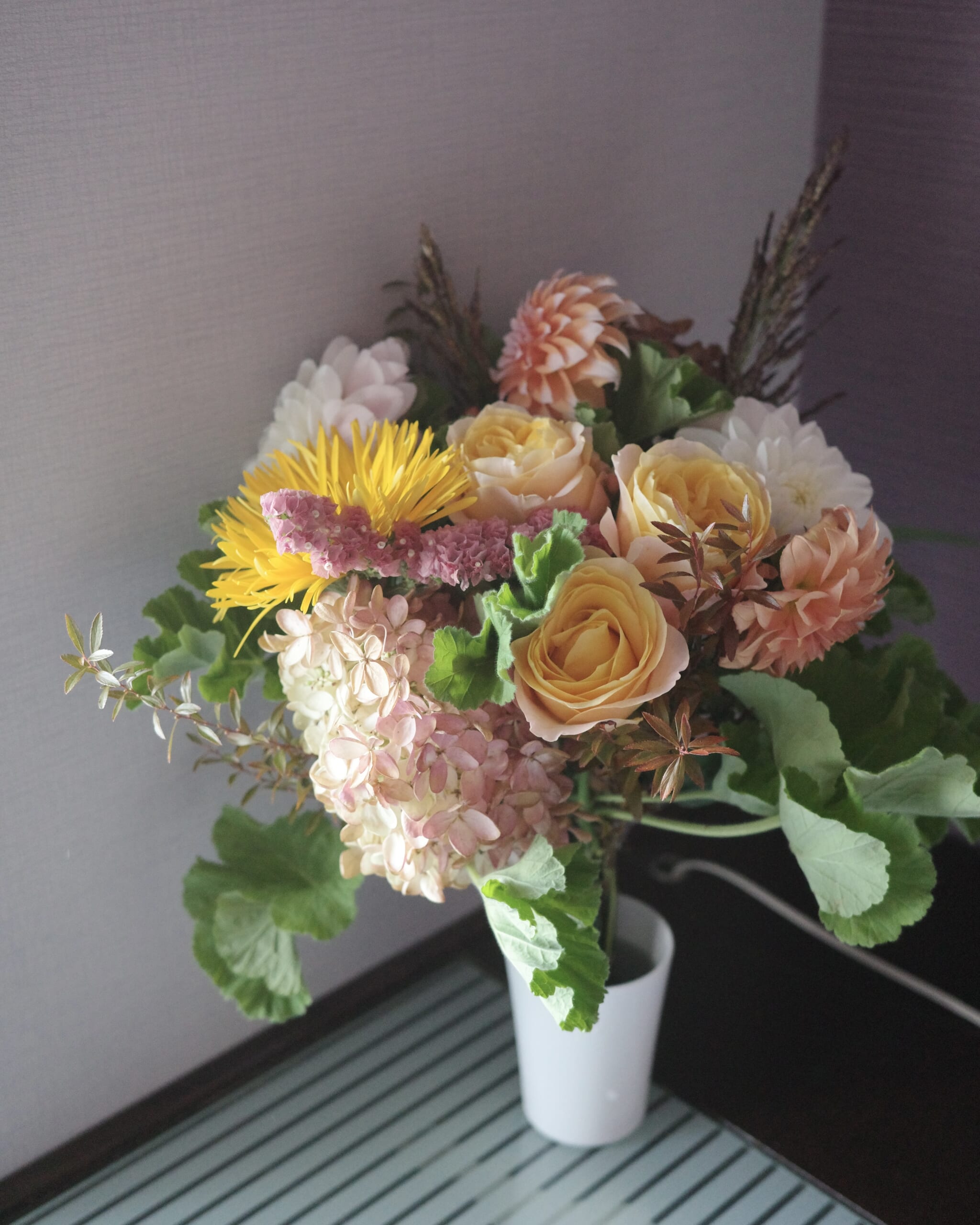 すこしでも長くフレッシュな花々を味わいたいから、ホテルでもコップに挿して堪能しました♡