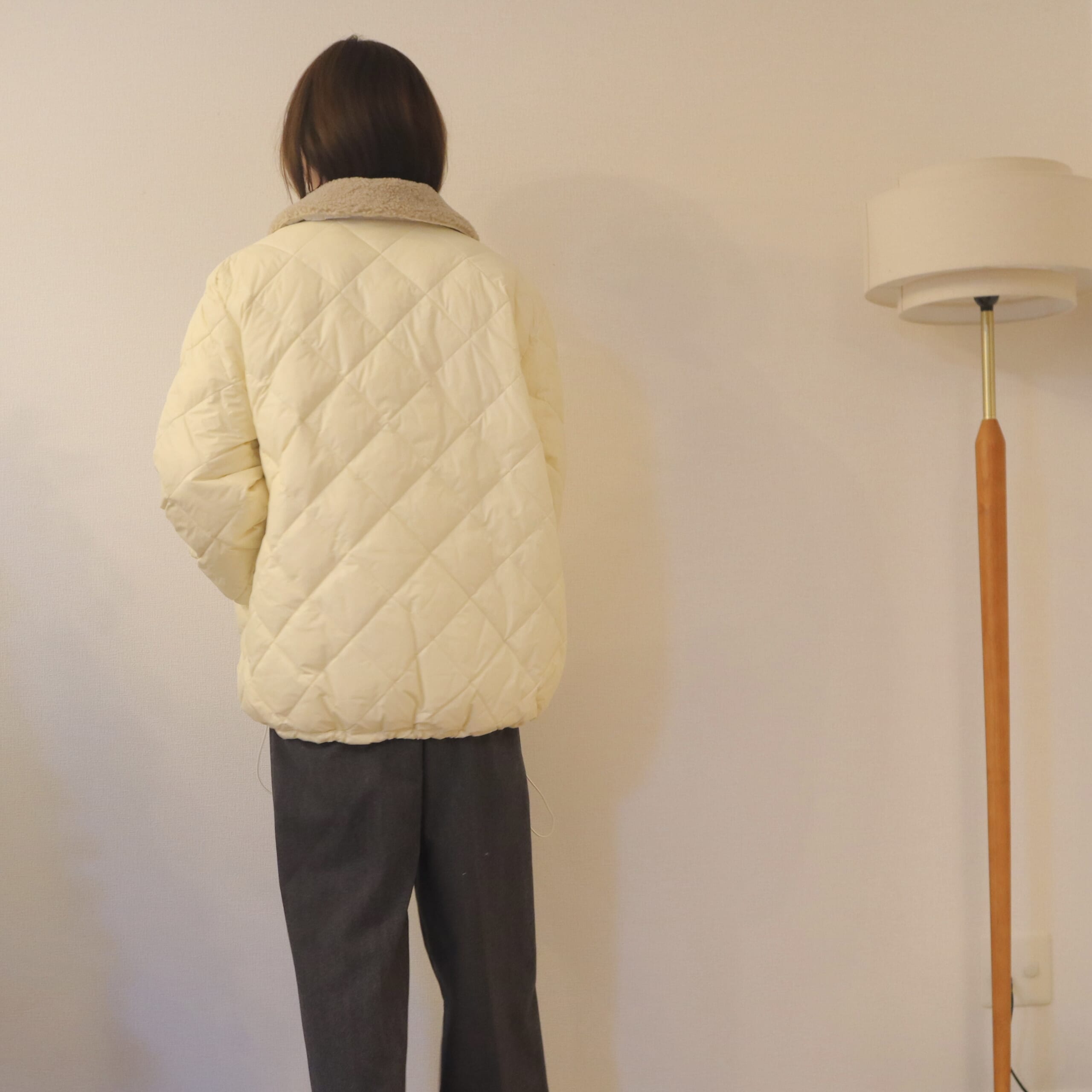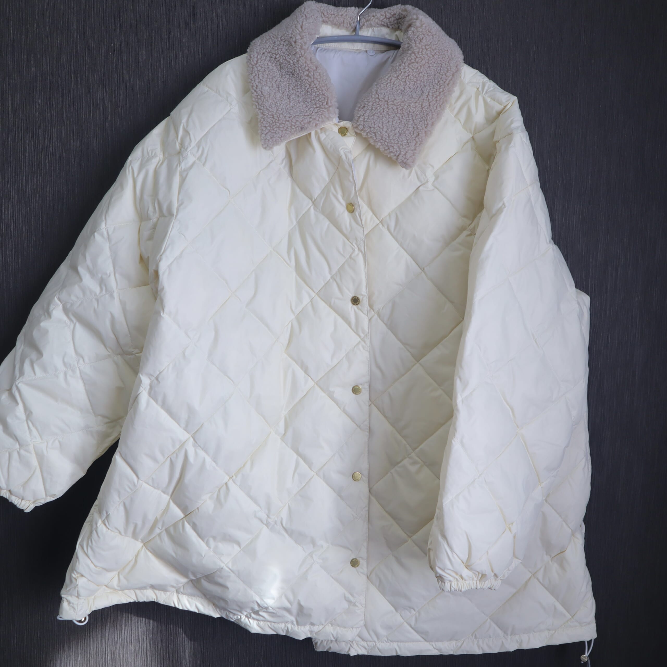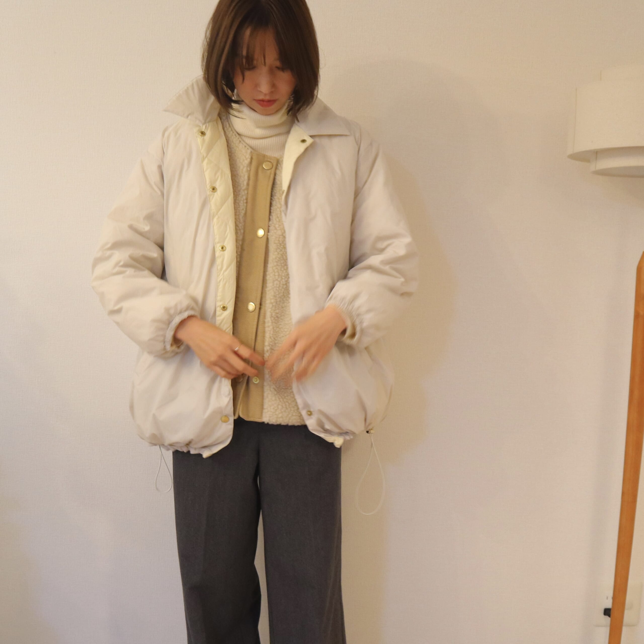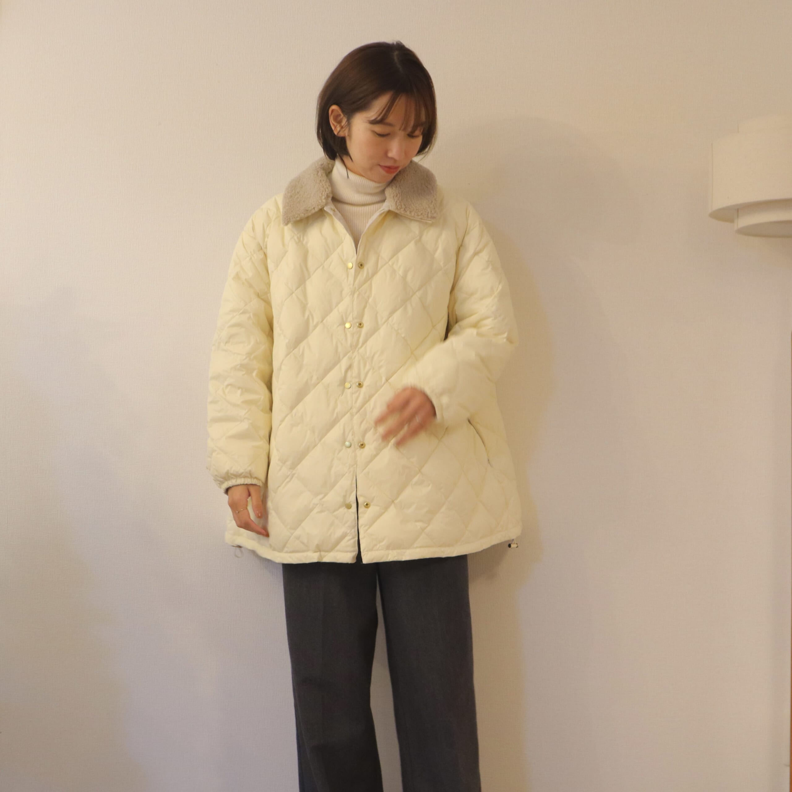 ボア襟、ゆったりシルエットがかわいい。2WAYリバーシブルダウン