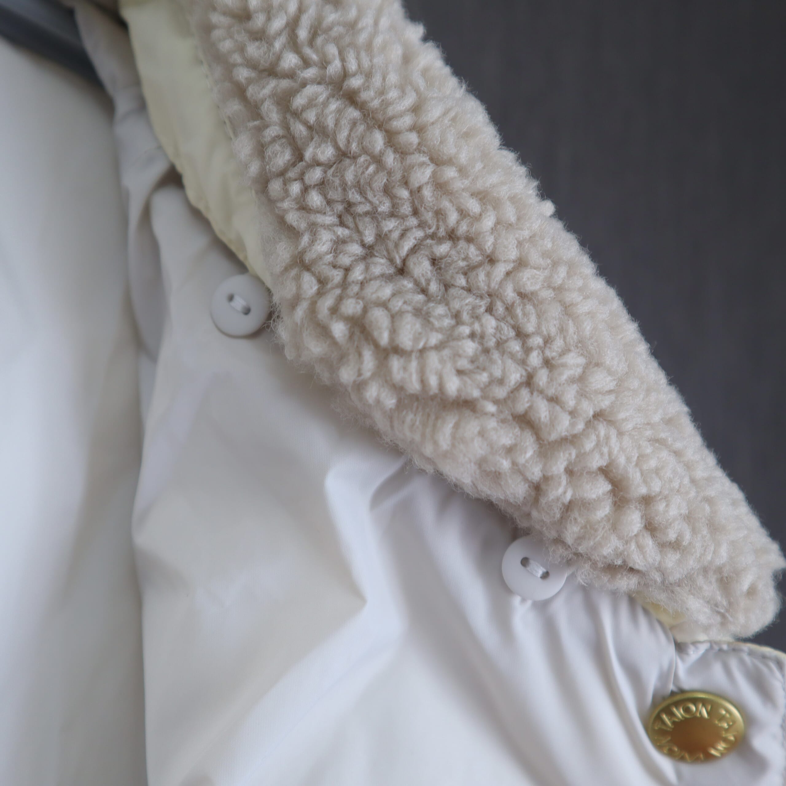 襟についてるボアはボタンで簡単に取り外し可能。