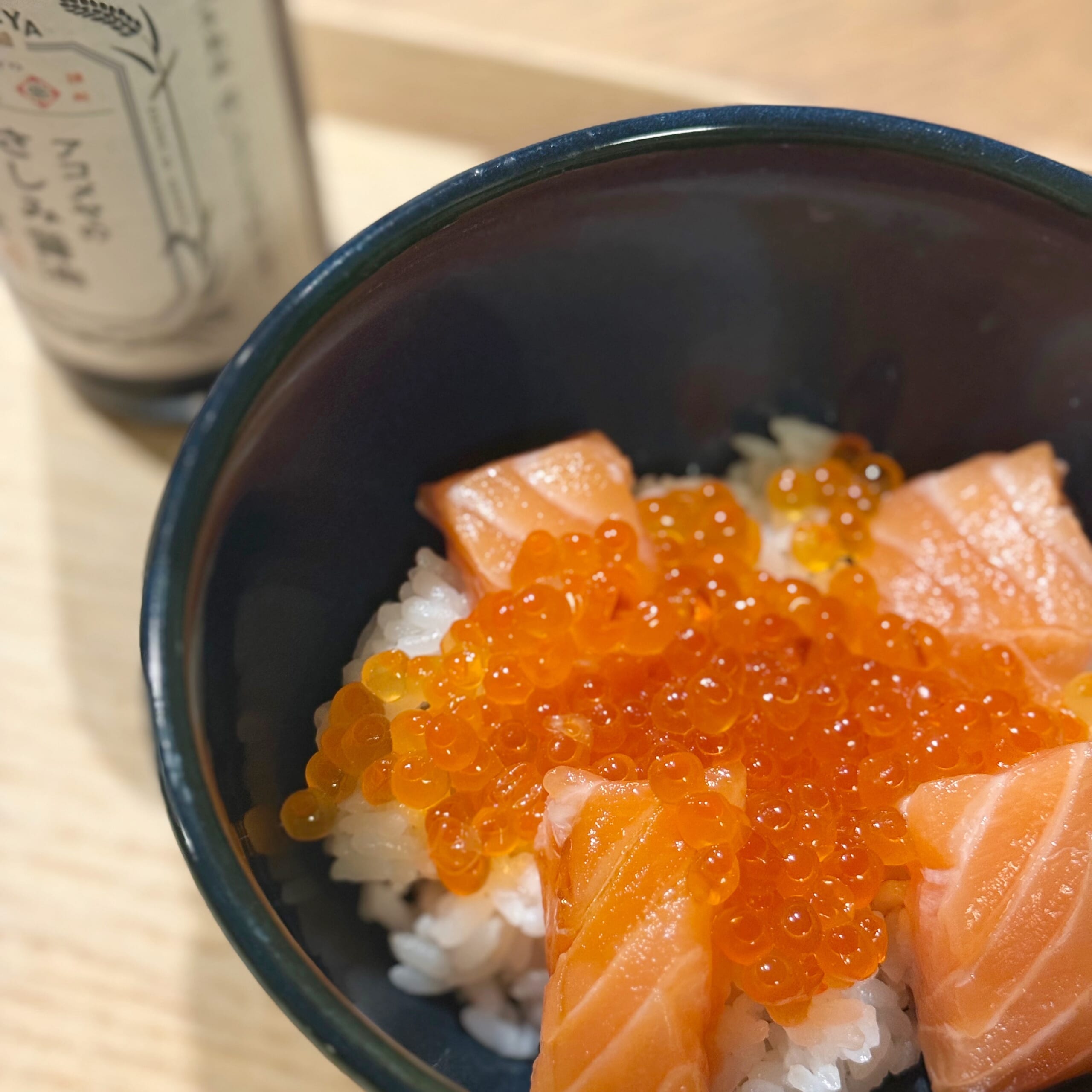 次男が私に作ってくれた海鮮丼に、さしみ醤油をたらり。幸せの味がしました。