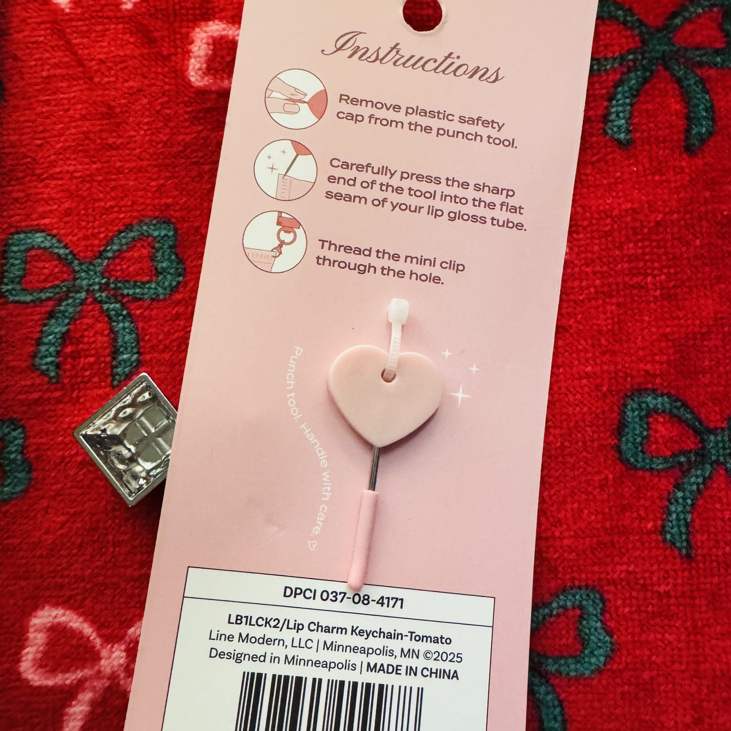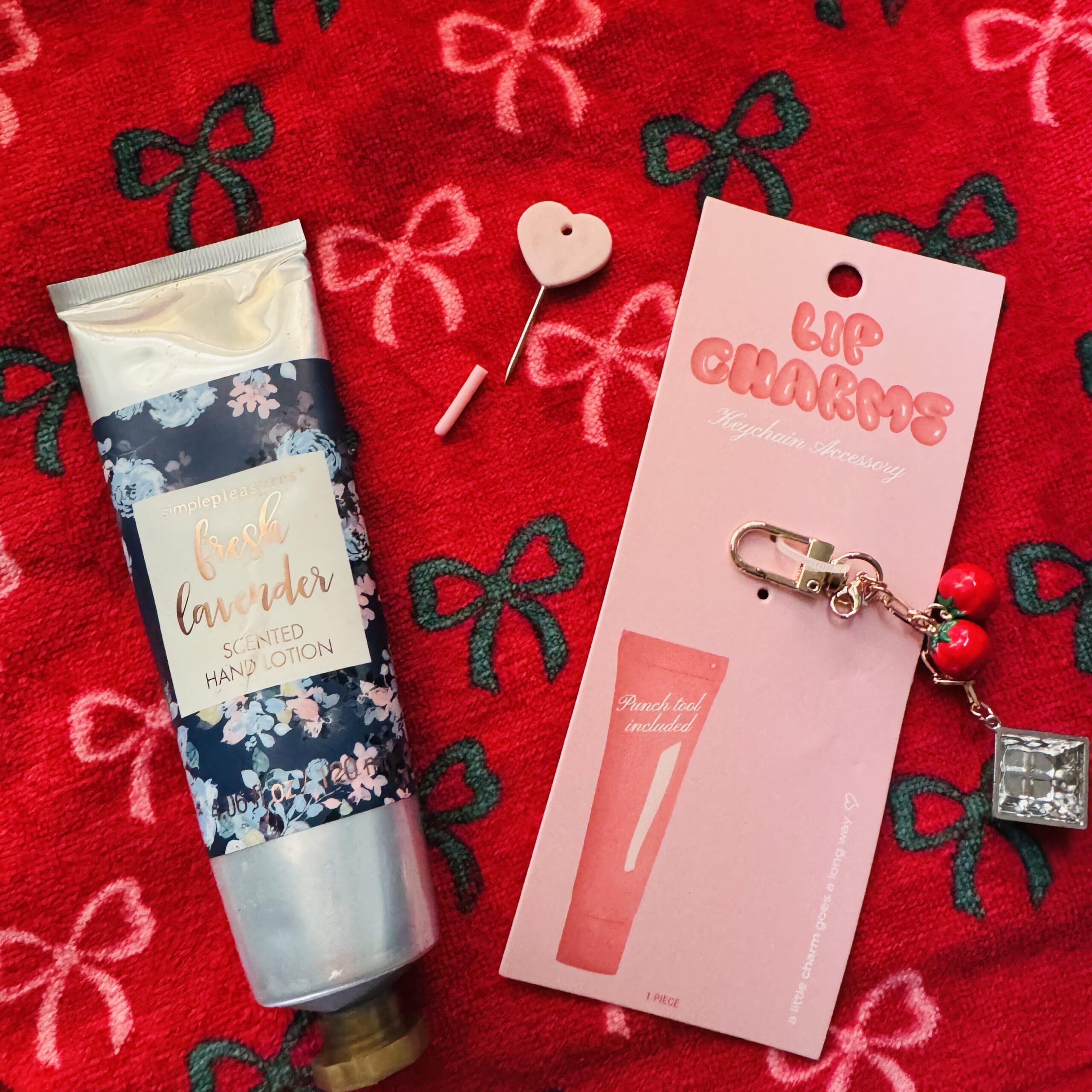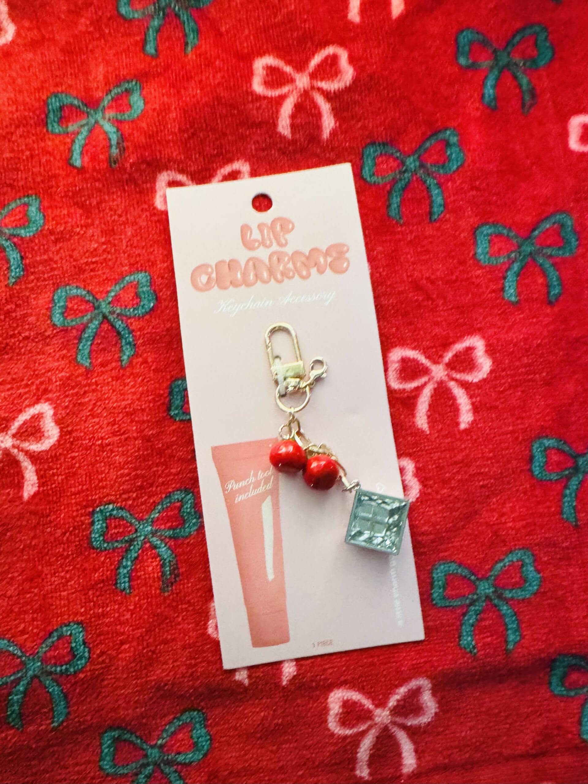 裏面を見るとハンドクリームやリップクリームのチューブの端っこに穴を開けてくっつけるチャーム。