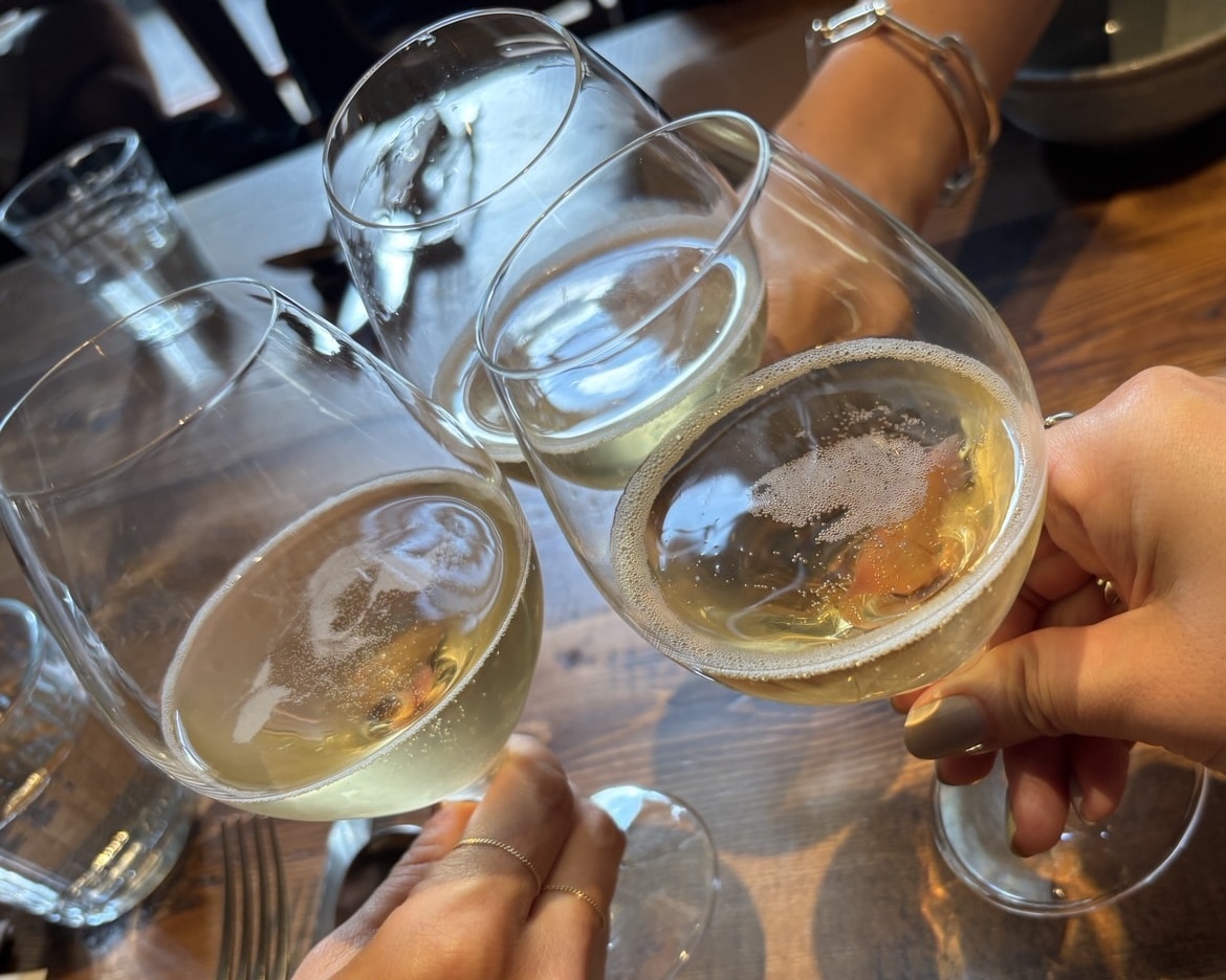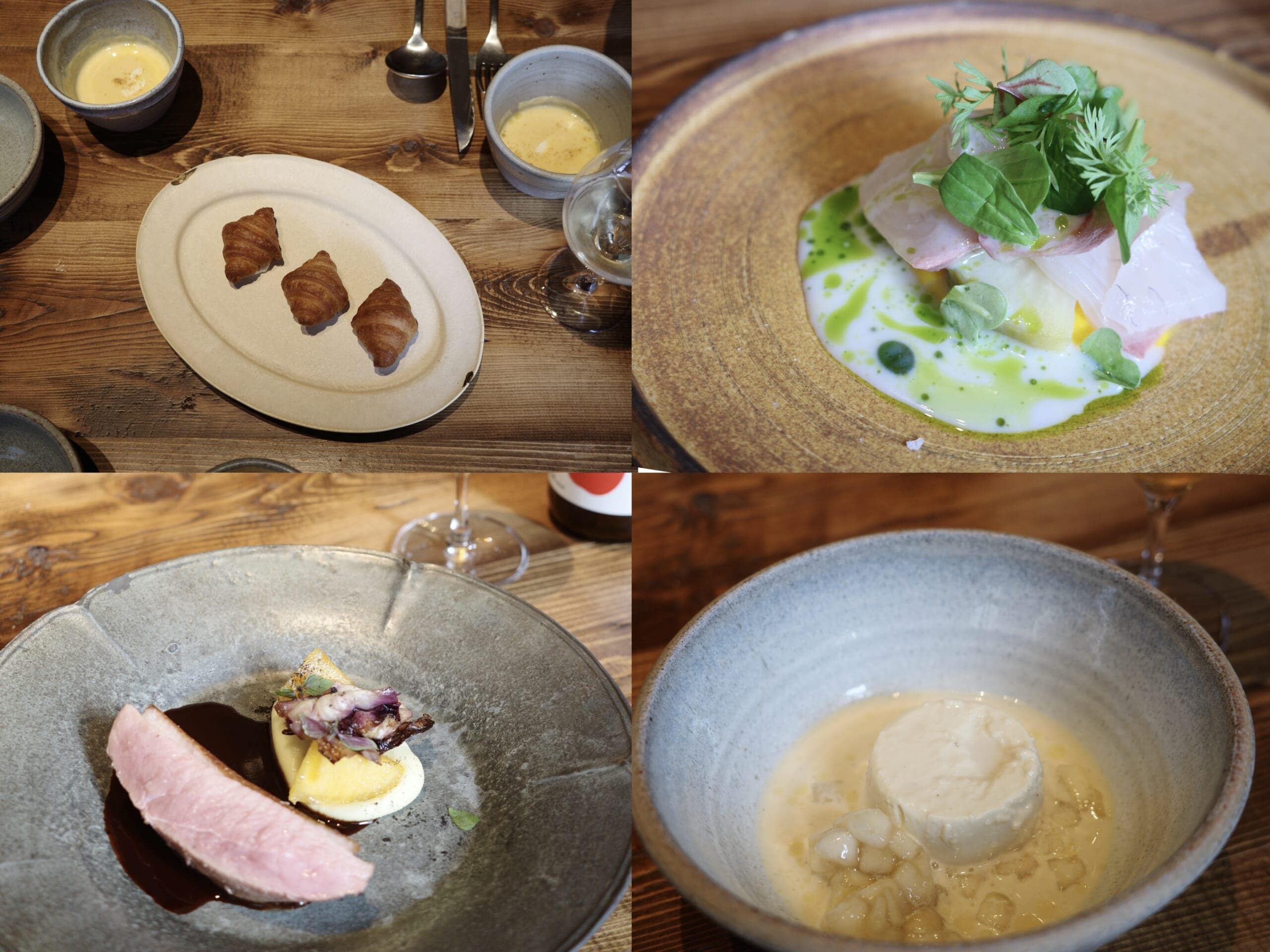 全5品のランチコースをしかと堪能。べったら漬けが挟まったミニクロワッサンのお酒との相性の良さには、みんな驚愕!