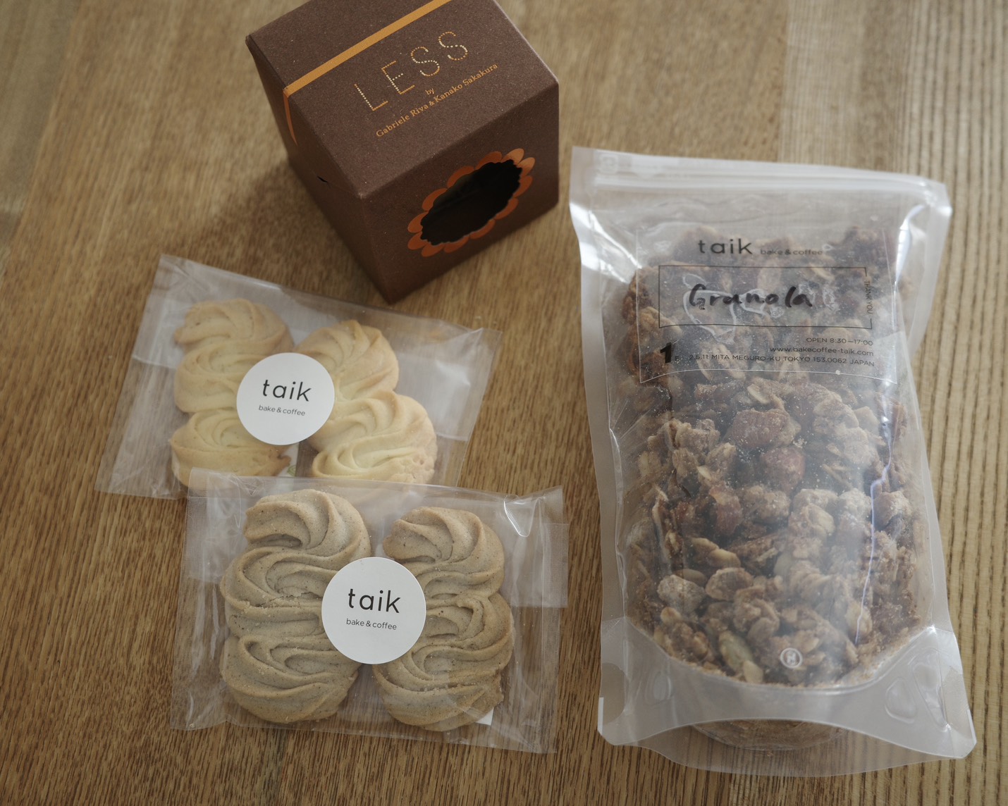 惜しくもお腹はパンパンだったので、自分用に1Fの「taik」でクッキーとグラノーラだけさくっと購入。