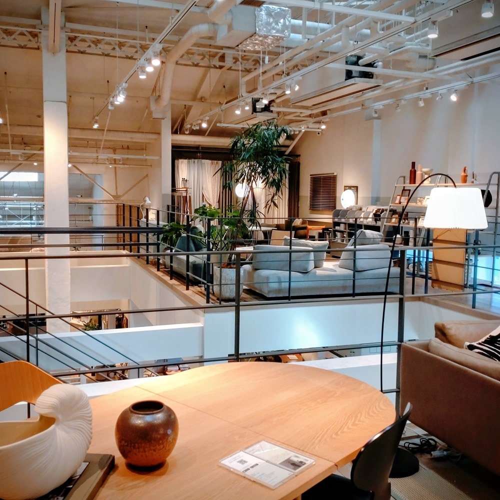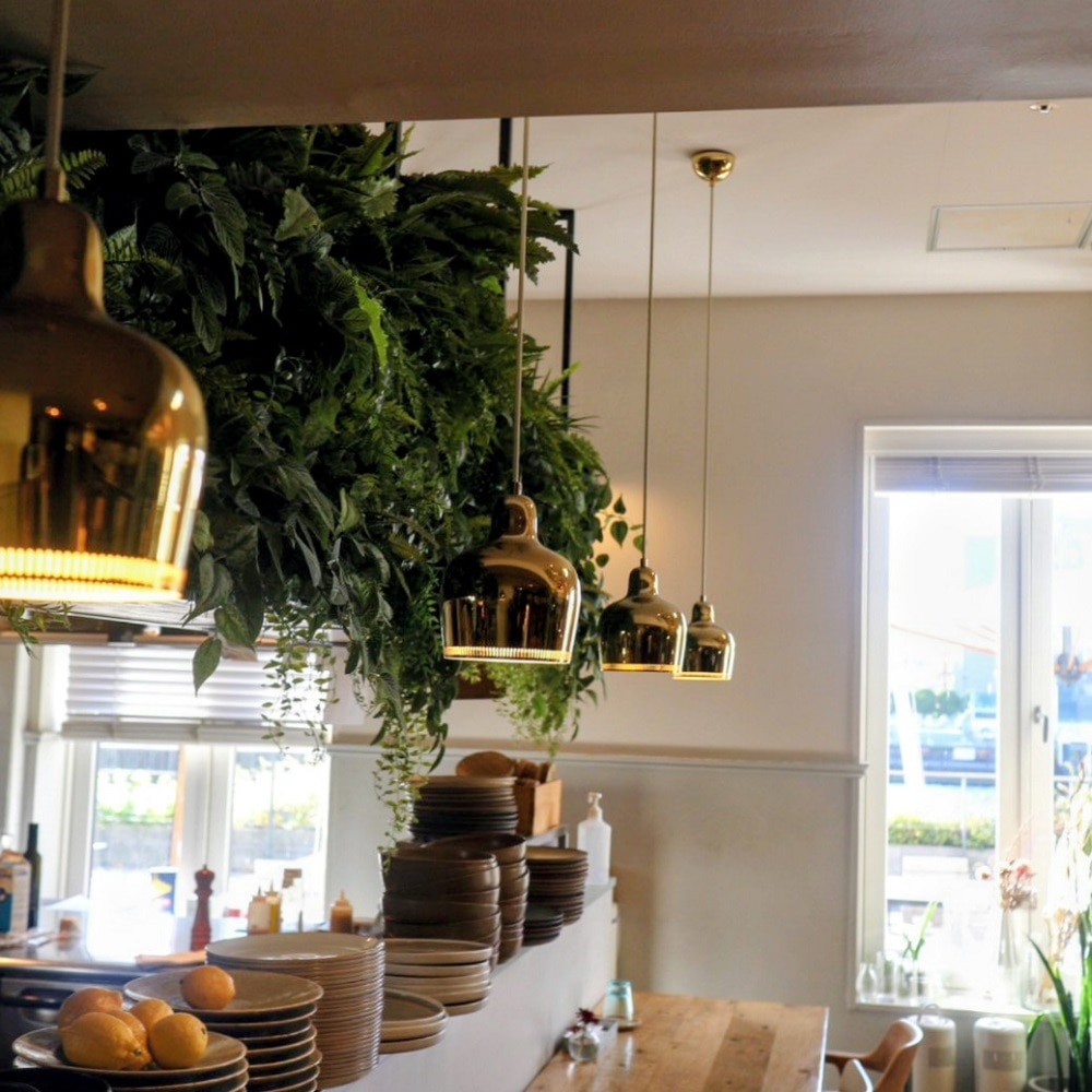 ランチ会場はインテリアショップのアクタスが運営するレストラン、スーホルム。店内のインテリアも北欧っぽくて好みです。照明器具はフィンランド旅で見たカフェ・アアルトと同じものでした。