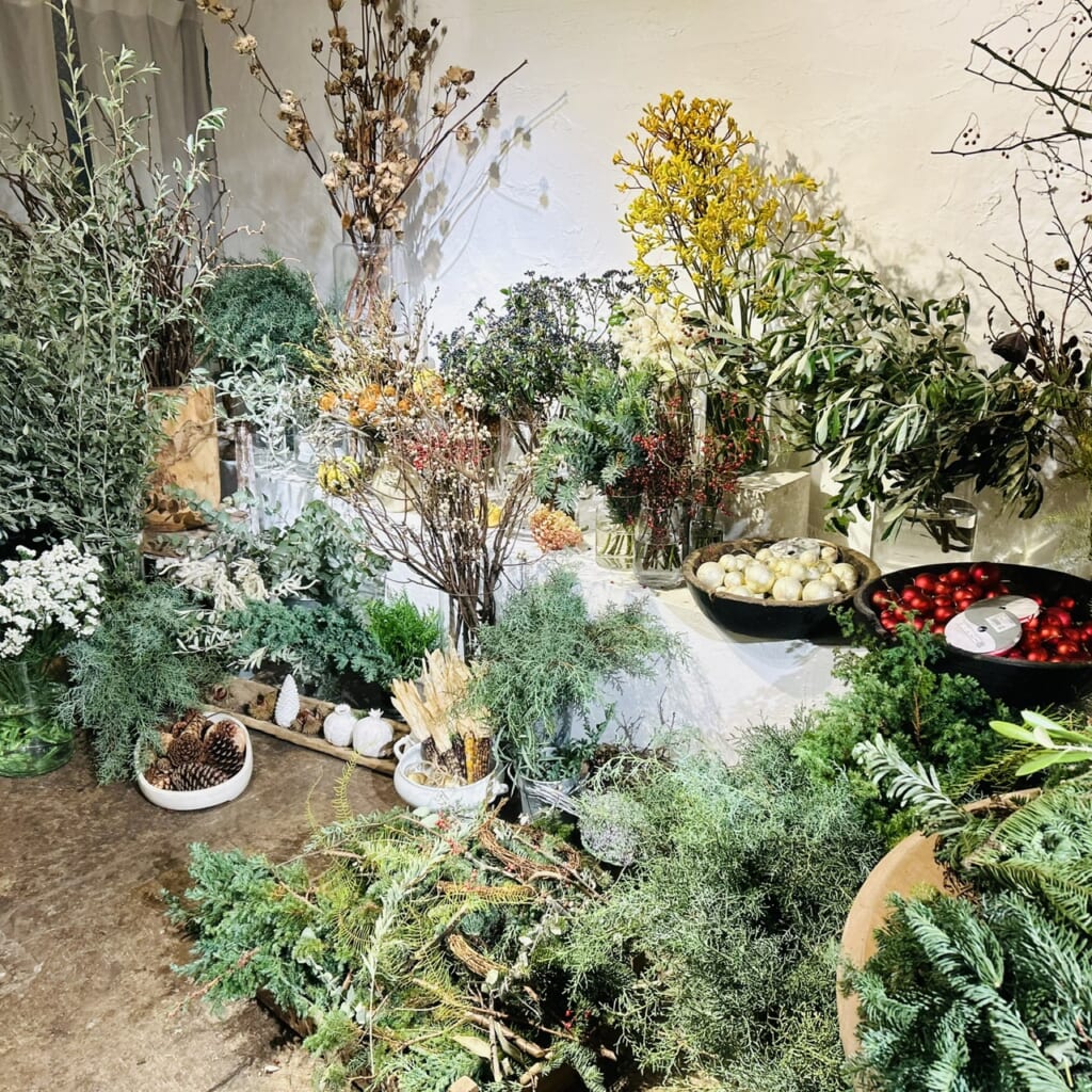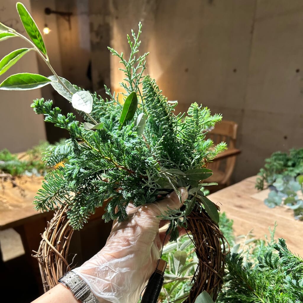 ウヴルさんのフラワーレッスン、11月のレッスンはクリスマスリース制作でした。