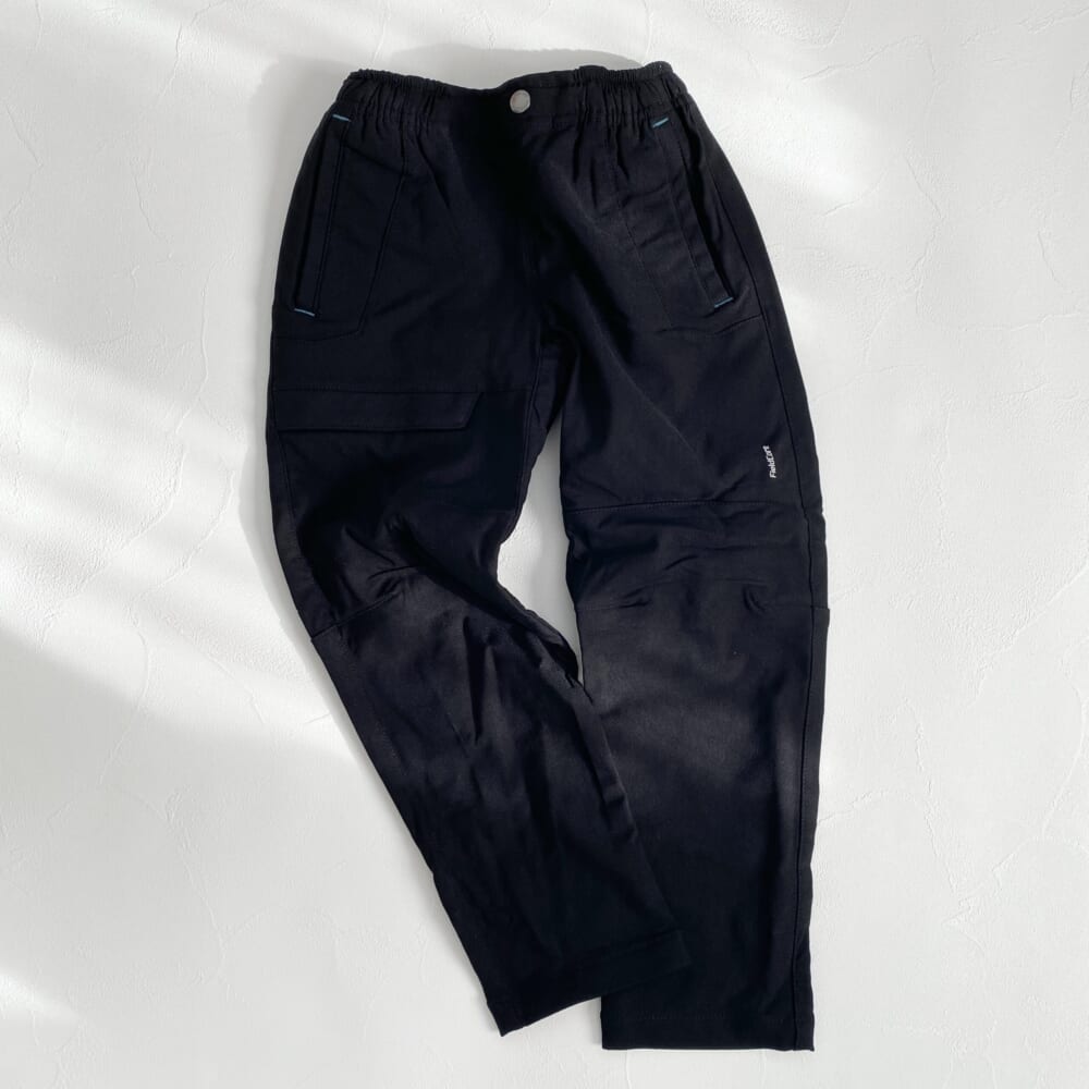 一緒に購入したエアロストレッチウォームクライミングパンツキッズもストレッチがよく効いていて履きやすそう!こちらも撥水やUVカット、ストレッチ、保温…などなど多機能でした。