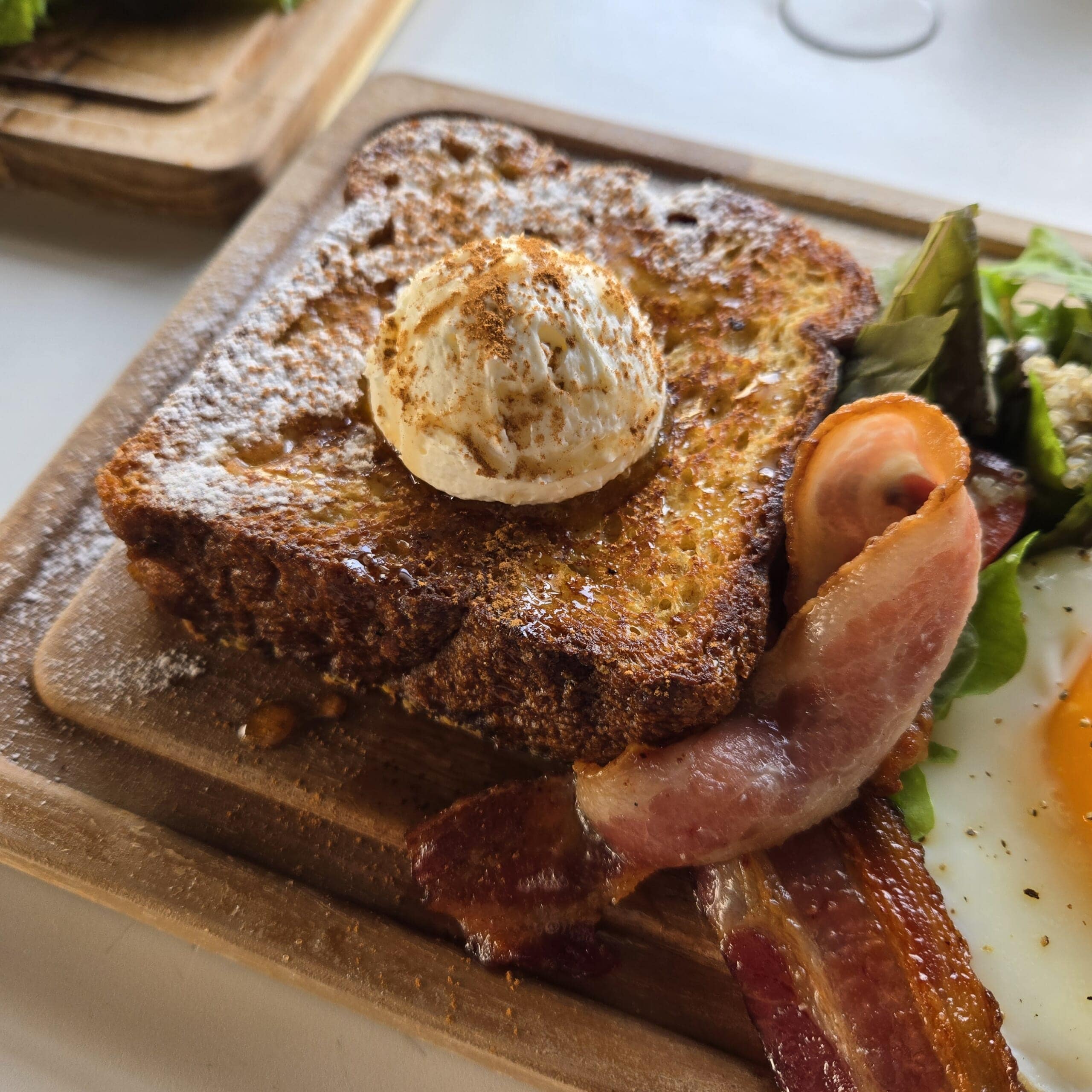 このフレンチトーストが本当に美味しくて、結構シナモンが効いてるのですが、それがやみつき😋上のクリームが塩ホイップで、甘じょっぱいところにシナモンがたまらないのです🥰