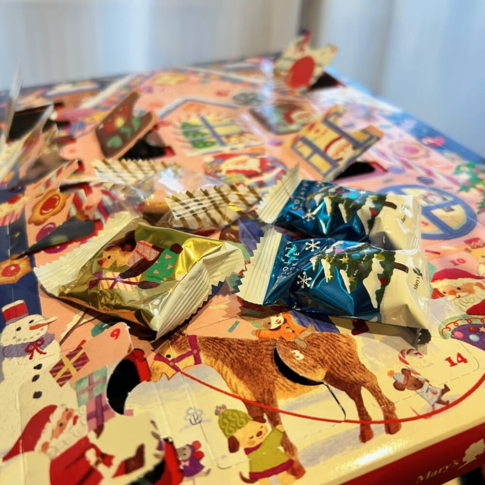 毎年2人で楽しんでいたアドベントカレンダー。今年は娘が1人で。