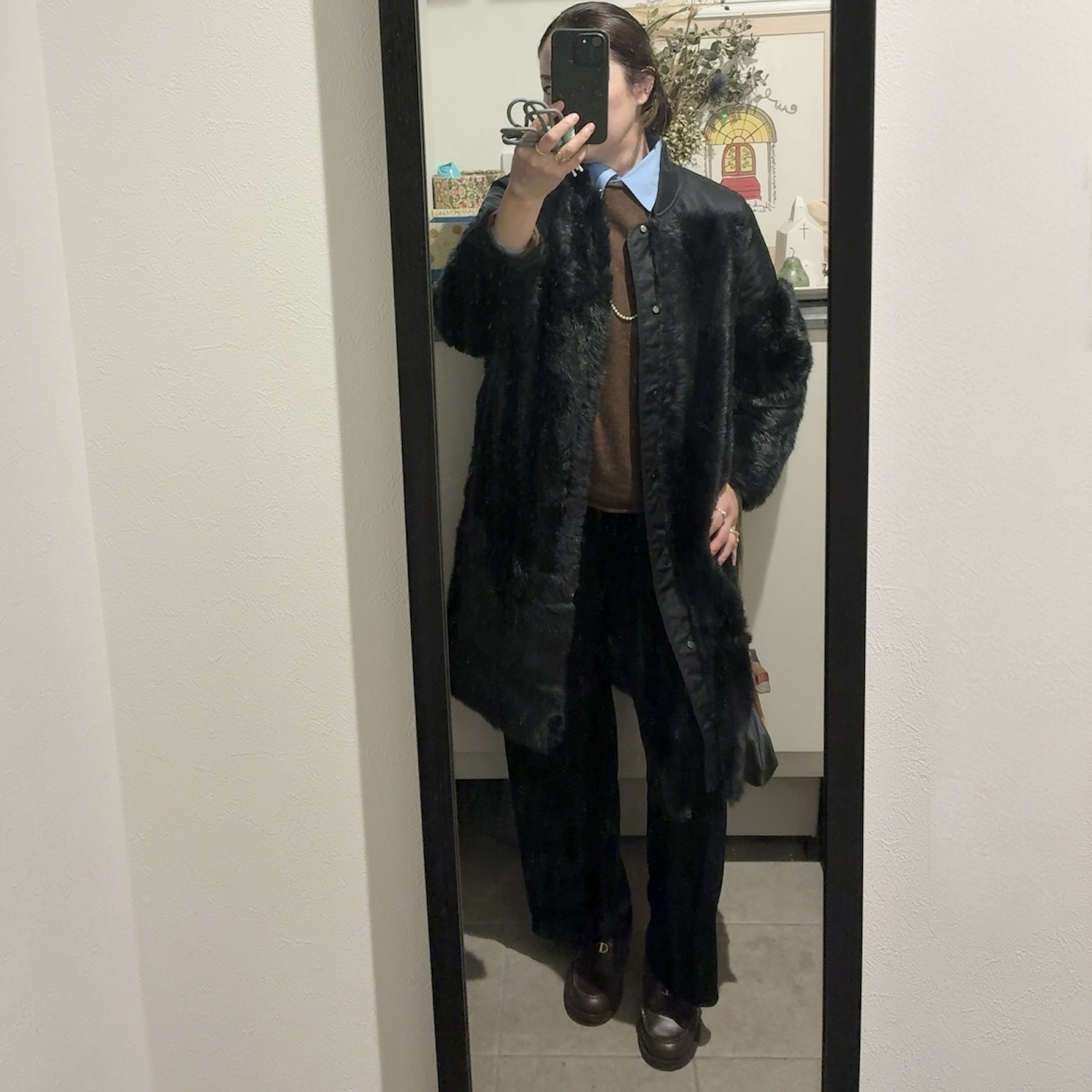 コート/near.nippon シャツ/MEYAME ニット/ARGUE パンツ/Chacott BALANCE バッグ/ヴィンテージ 靴/ZARA(チャンピョンコラボ)