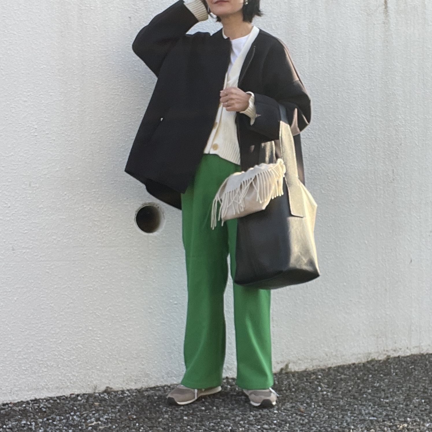 近年、私の中で好きなカラーランキング上位のグリーンですが、コーデにも取り入れやすい万能色。
