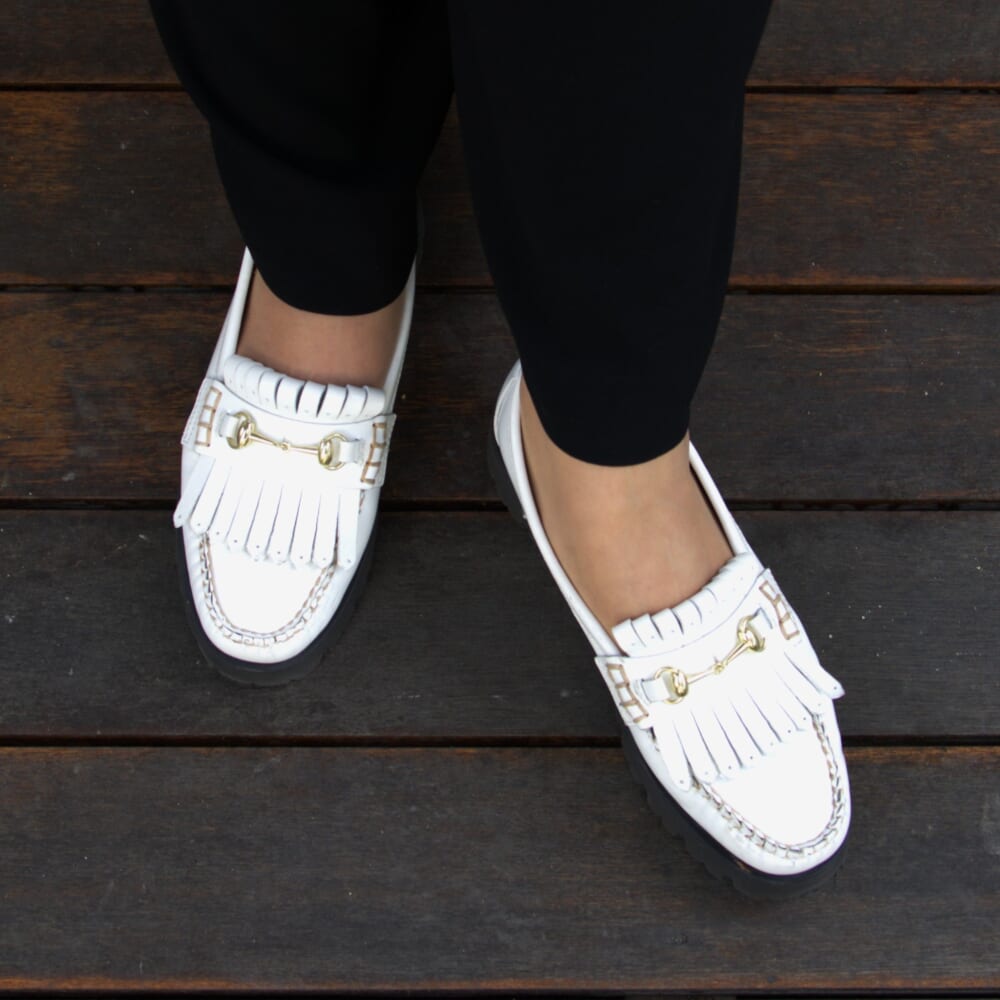 足元も白。以前から持っているローファーにしました。