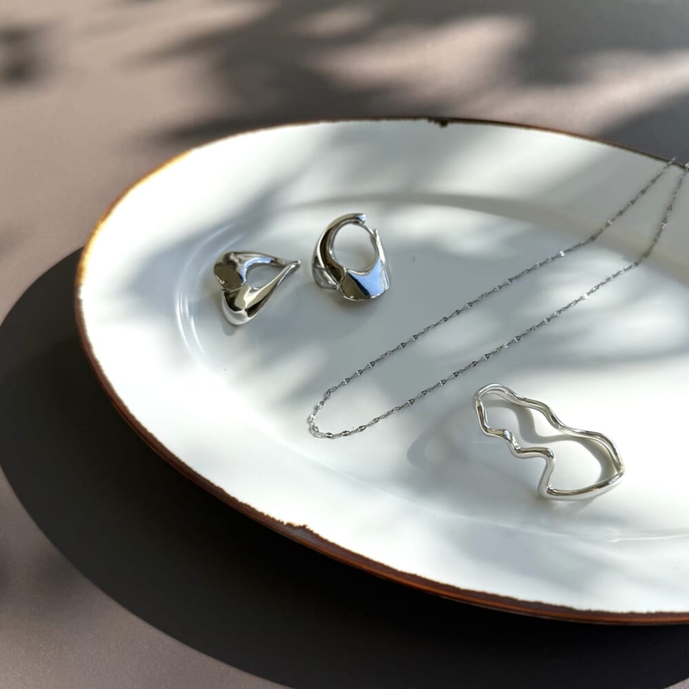 アクセサリーはシルバーで