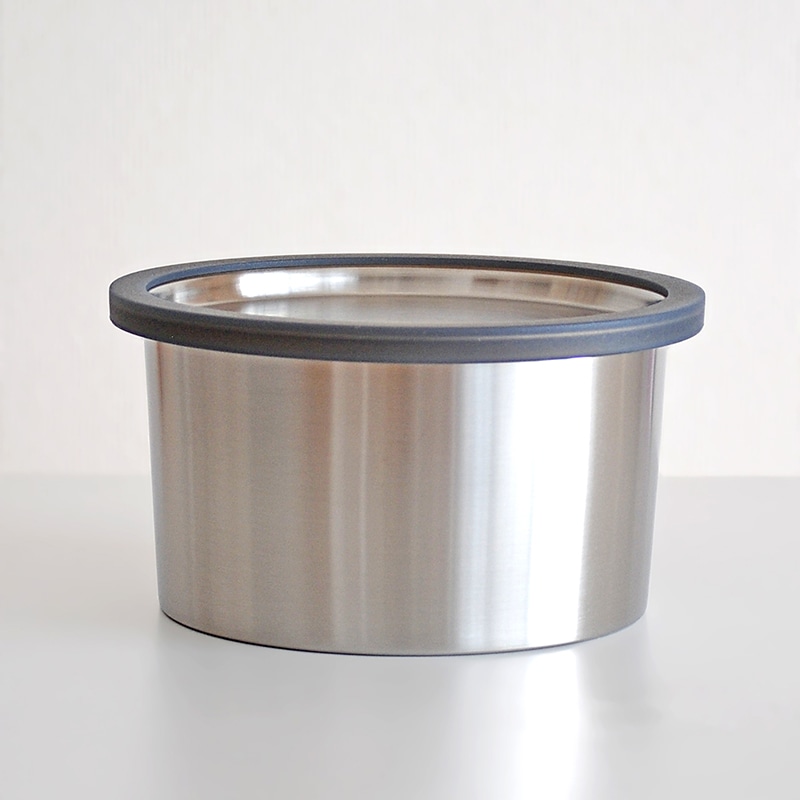 その名の通り、蓋にパッキンが付いてお弁当箱としても最適な丸型のステンレス製保存容器です。