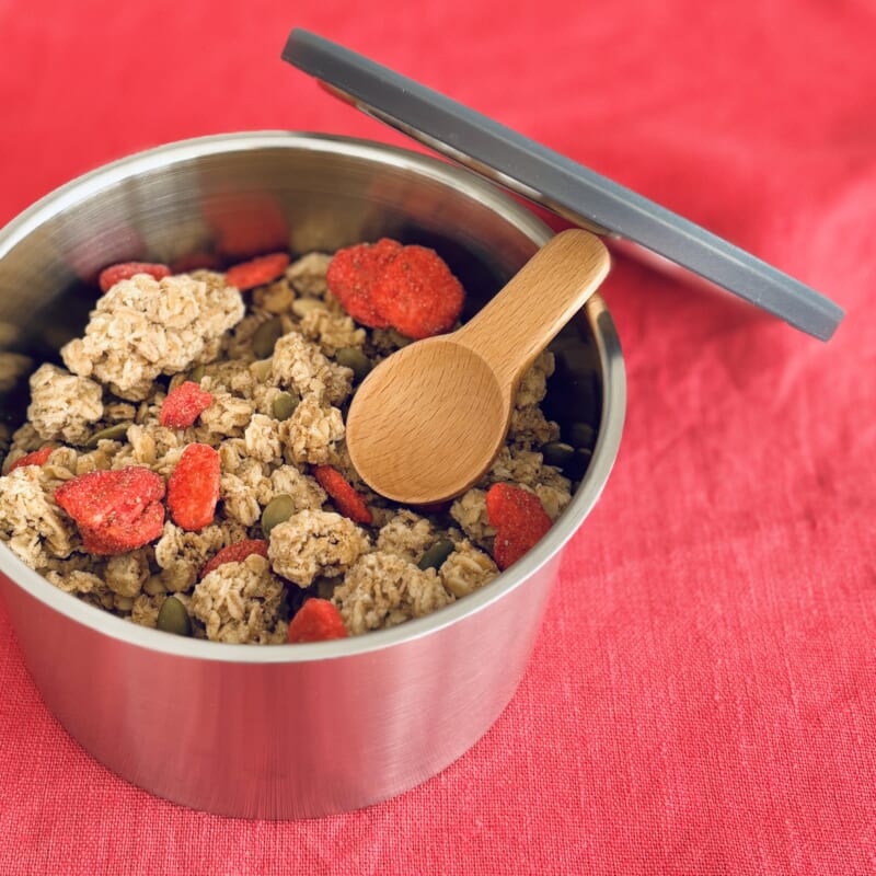 パッキン付きで、しっかり密閉してくれるので、私はグラノーラの保存に。
