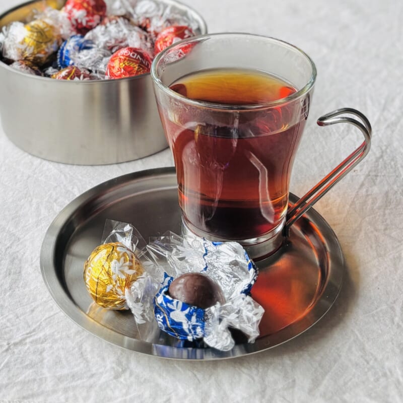 ドリンクとちょっとしたお菓子がちょうどよく収まるサイズ感。