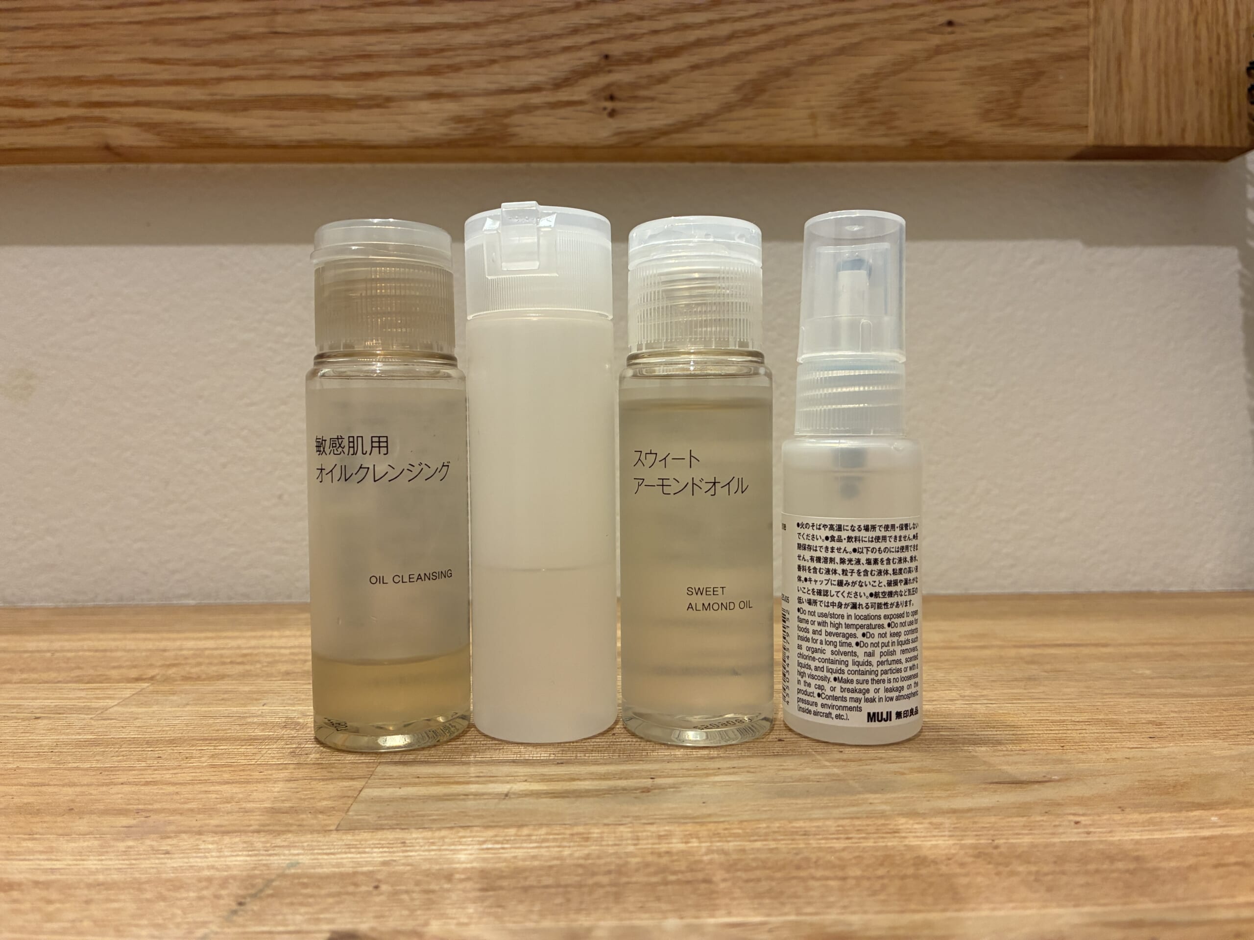 いつも使っているものをコンパクトにして持っていくのが一番安心。ということで、無印良品のコンパクトサイズのものを持っていく、ということに落ち着きました。