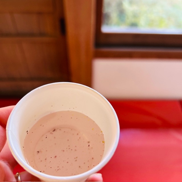 休憩所では、金粉入りの紫蘇のお茶をいただき。(無料)