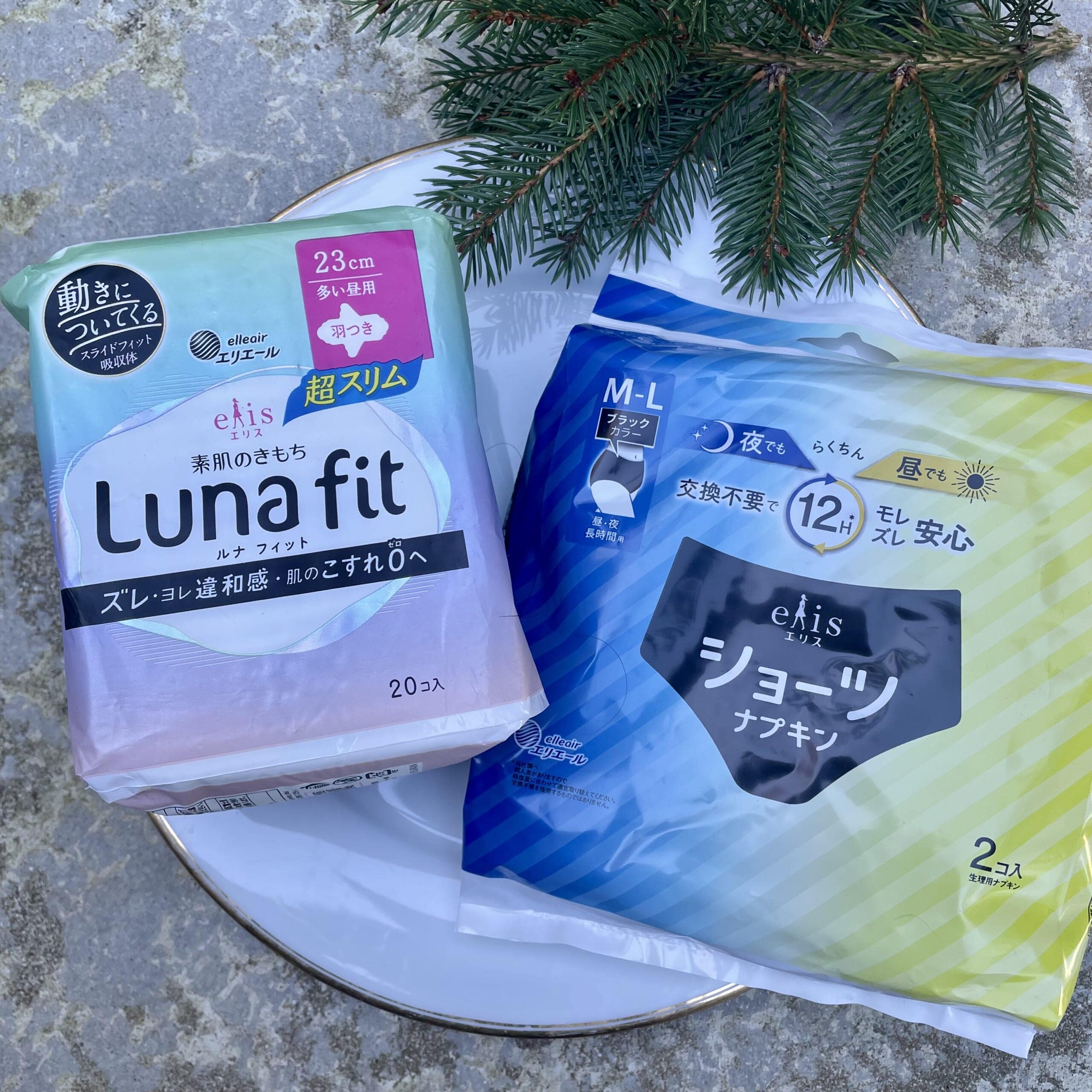 「エリス 素肌のきもち ルナフィット 超スリム(多い昼用) 羽つき20個」、「エリスショーツ M〜L」