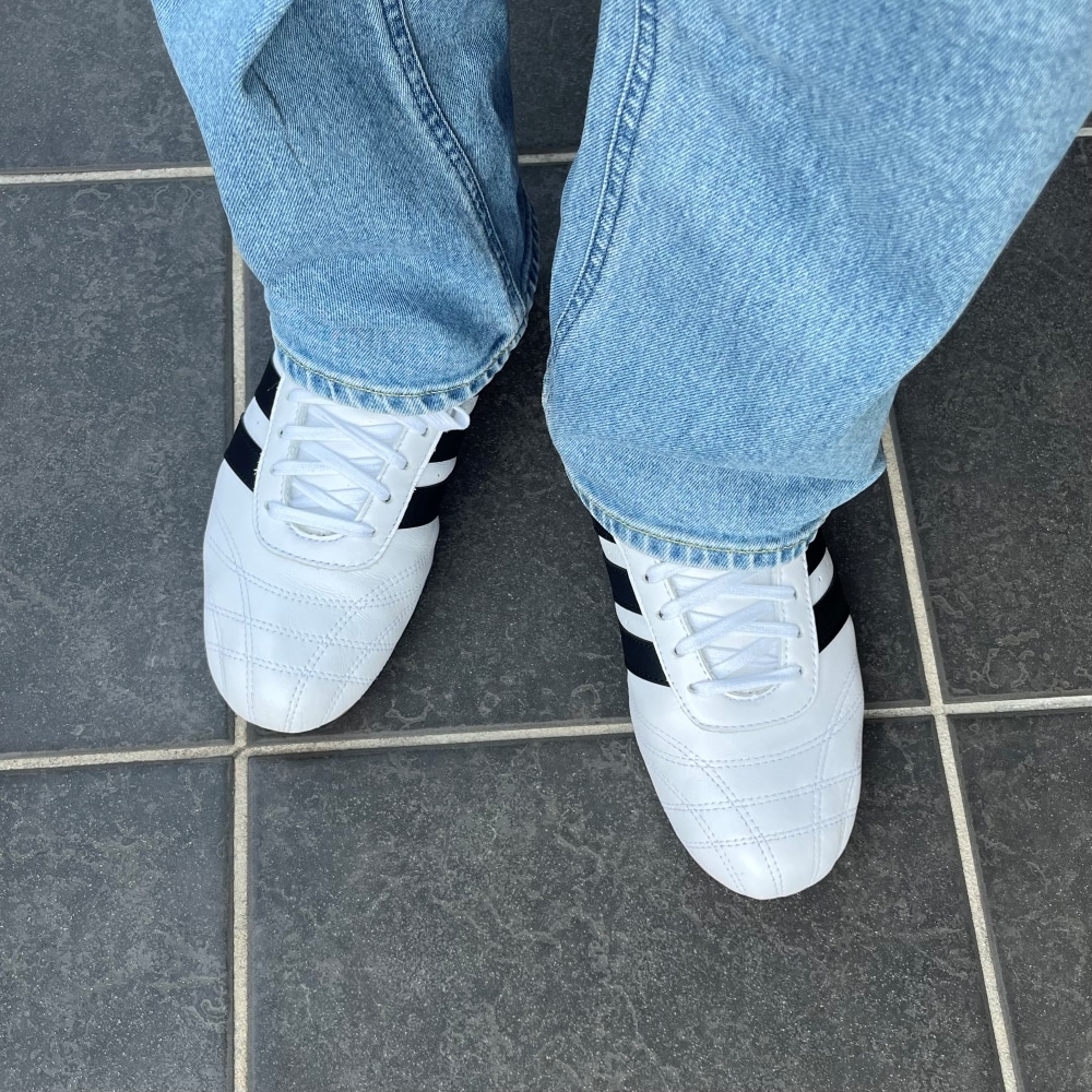 そこで、白のスリムなデザインのスニーカーも欲しいなと思って購入したのが、adidasのテコンドーの紐(シューレース)ありバージョンです。