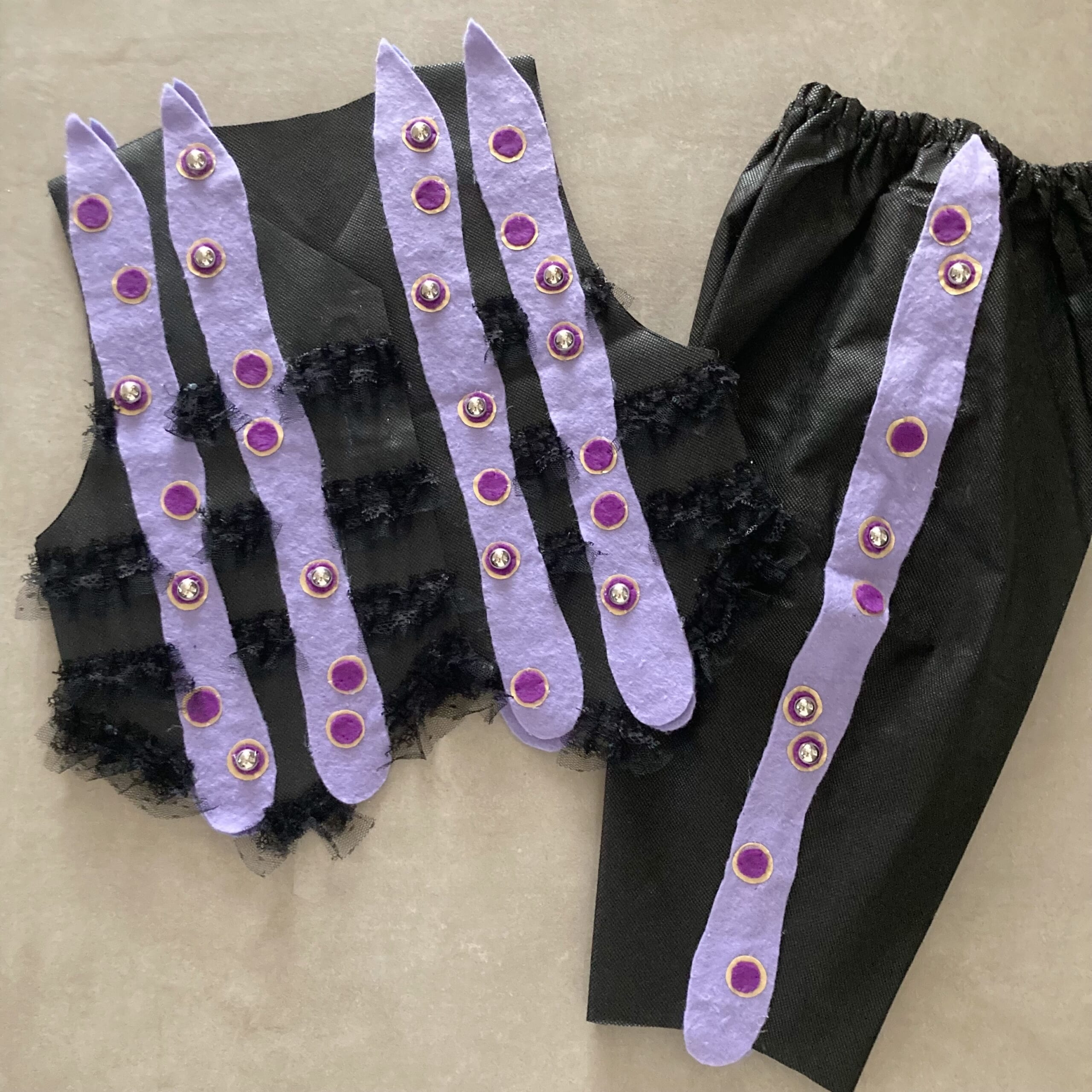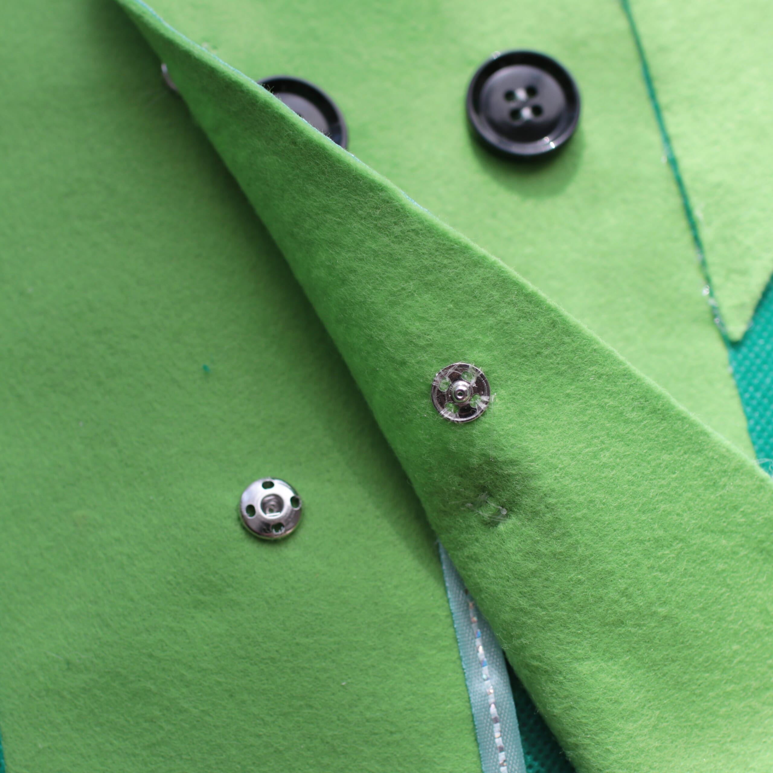 シンプルですが、上のシャツを切ってベストに見えるようにフェルトで作ったり、頑張りました…!