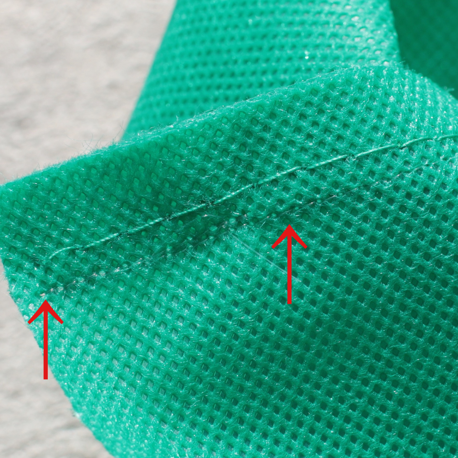 もともと、緑の糸で縫ってある下にポツポツポツポツと小さな縫い目が見えるでしょうか。