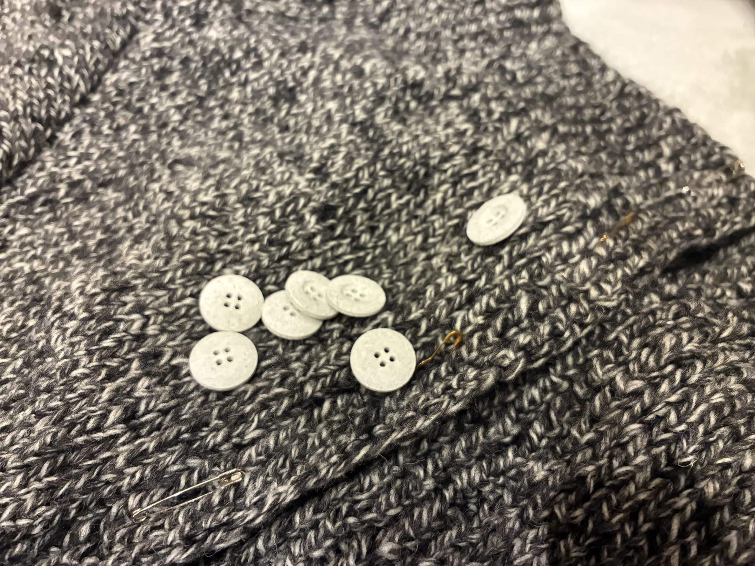 ボタンはViVO,VAさんで購入したもので、紙製なのでとっても軽い!お洗濯もできるとのことです。