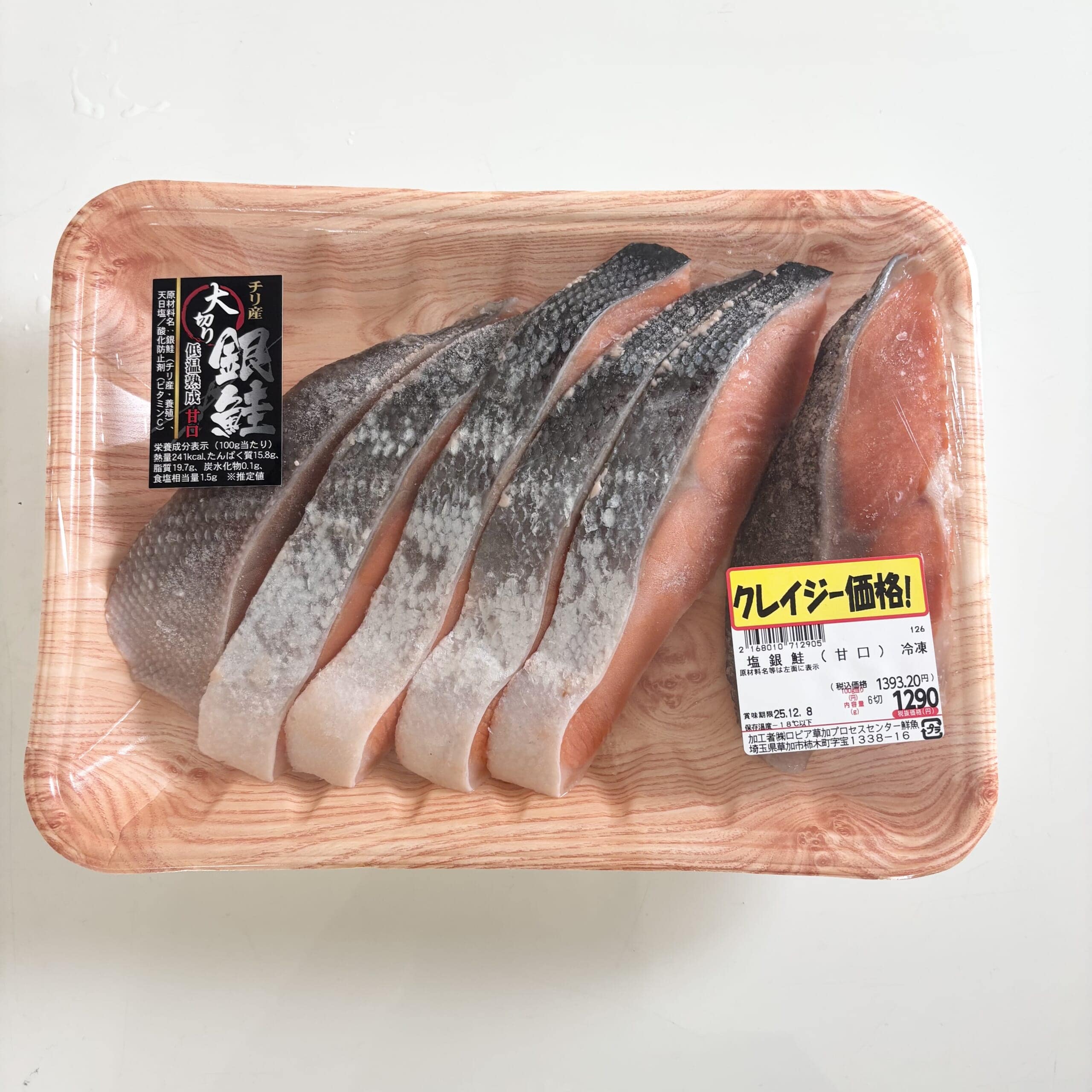 しらすの大容量パックやほっけ、お刺身類もなどおすすめなのですがこの日は塩鮭のみの購入でした。