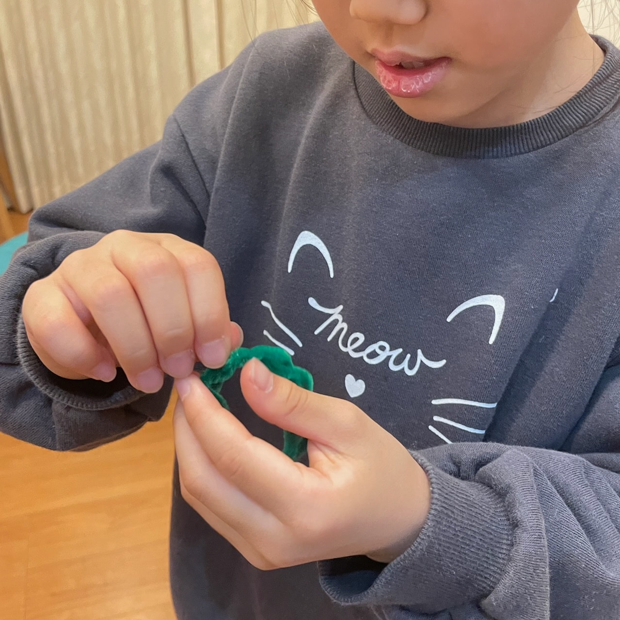 娘にせがまれて購入したDAISOカラーモールで、オーナメント作りに勤しむ母娘です。