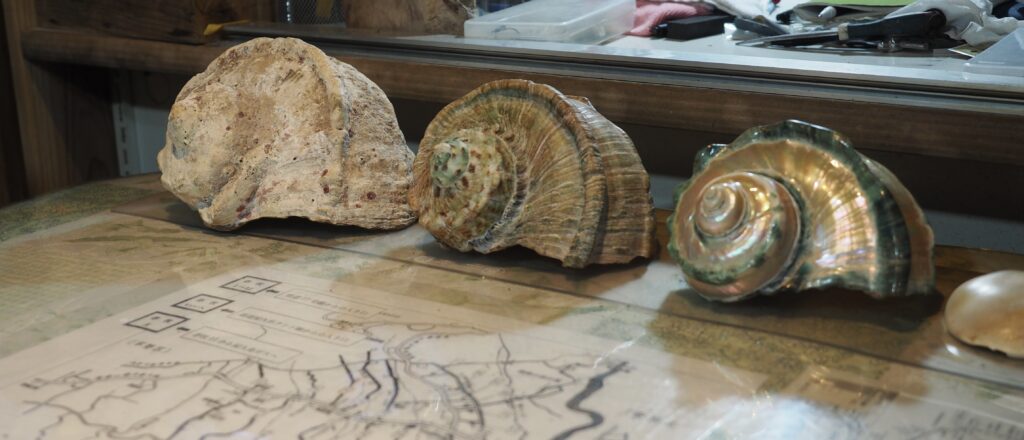 3日目はurukaの店主砂やんに教えてもらった田代海岸で貝殻集め。いなか浜と違って、波が荒々しく流木や貝殻がたくさんありました!