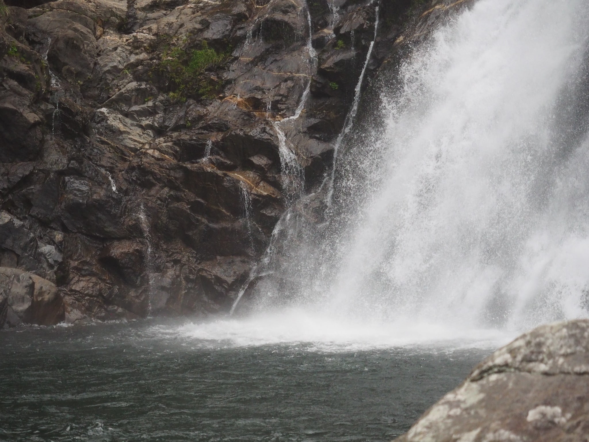 この滝は、滝壺のすぐ近くまで行けるから迫力満点!水しぶきをたくさん浴びて気持ちよかった〜!お猿さんも遊びに来てました。