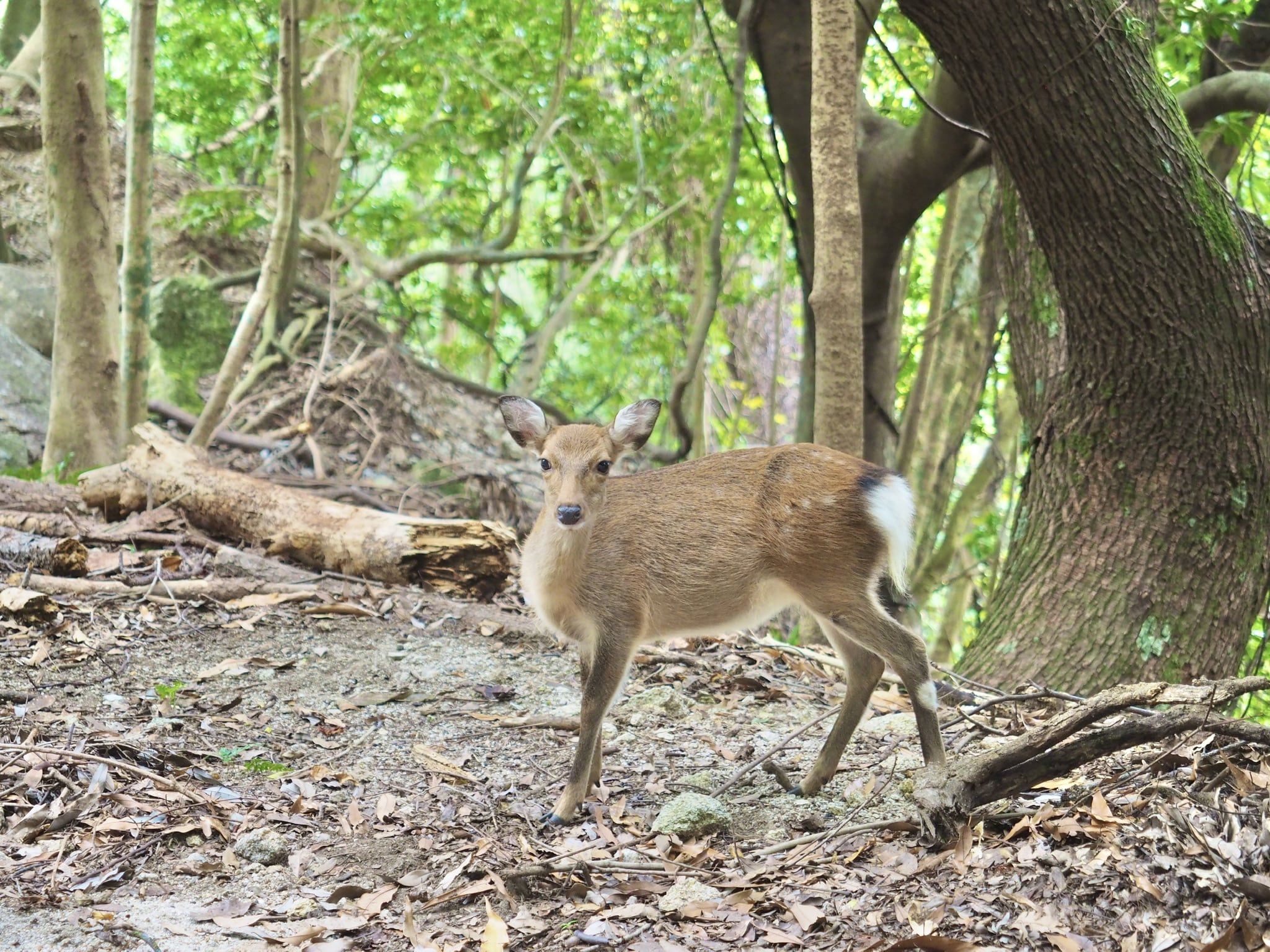 屋久島の道路は、車のためというより動物の憩いの場?!群れが移動するまで車が待つスタイル。
