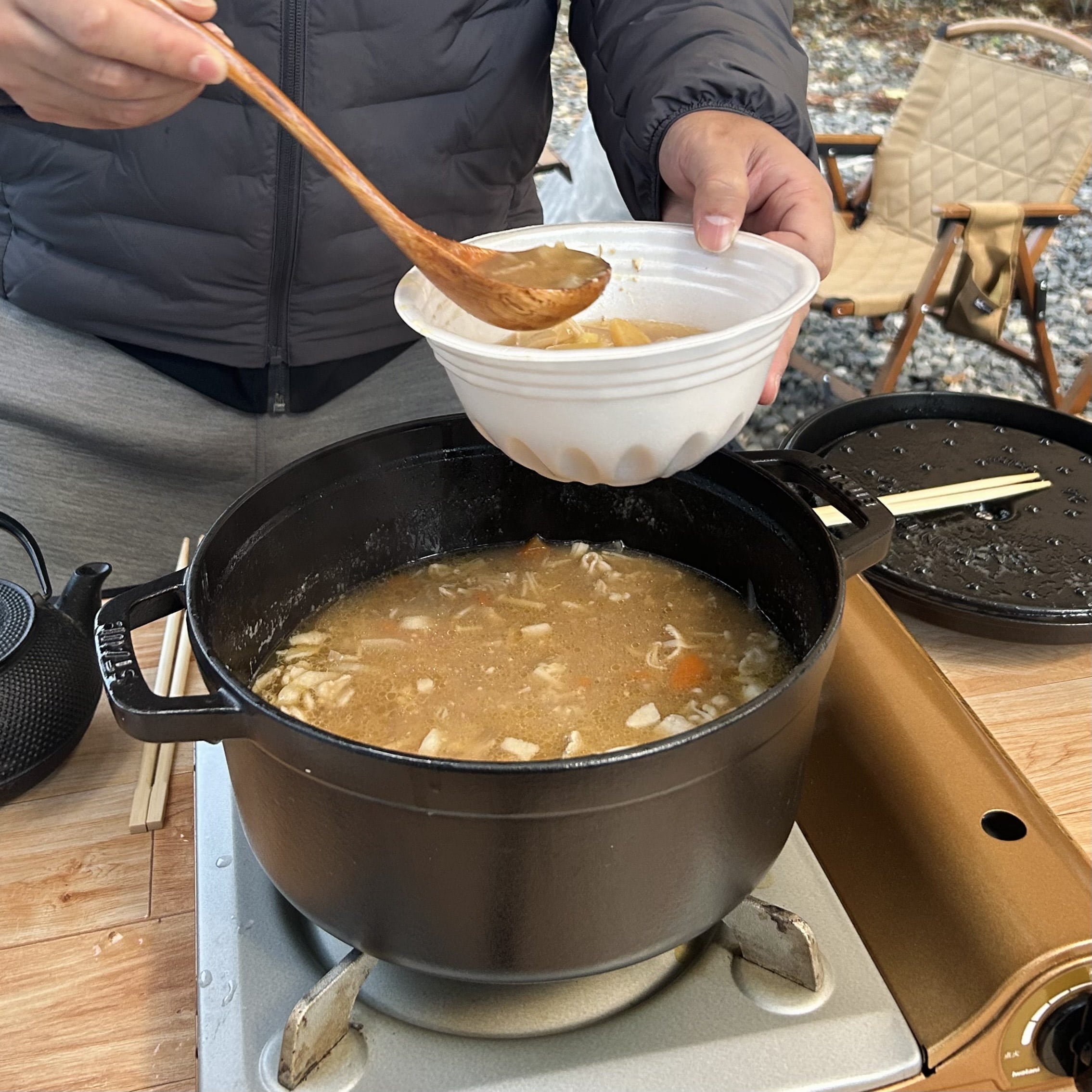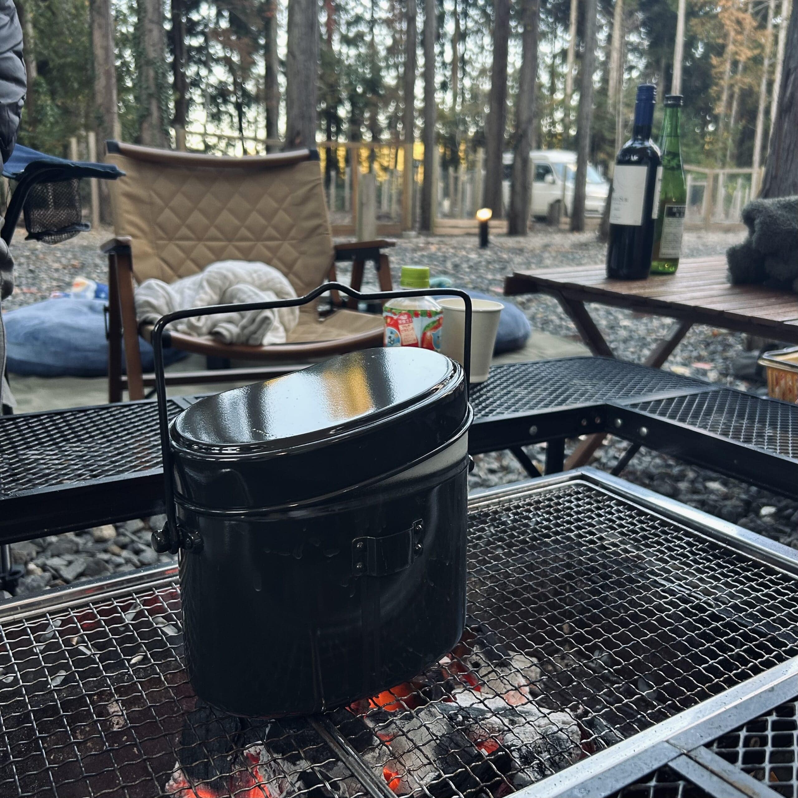 キャンプなら絶対に白米が食べたくなるだろうと思って、直前に思いついた飯盒を持参。
