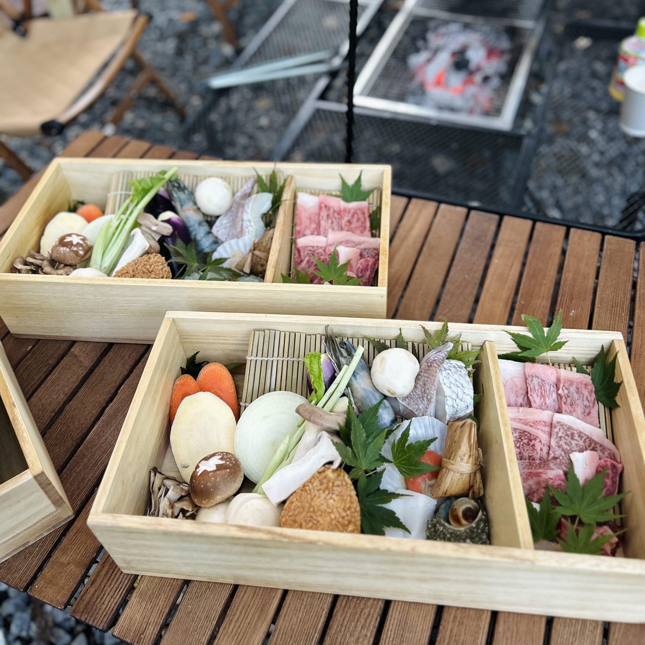 夕飯は豪華な「山武黒毛和牛/有機野菜/海鮮 BBQセット」