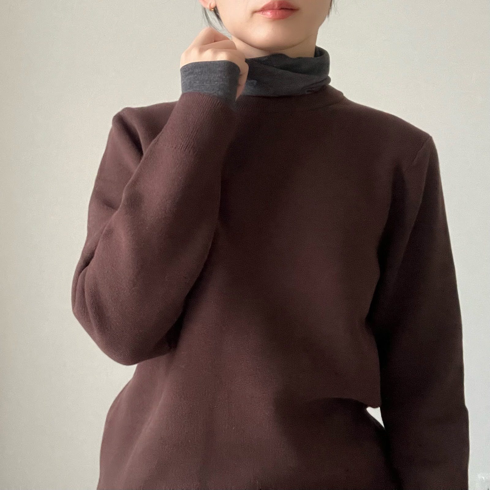 首元が比較的つまっているトップスでも、インナーにタートルを仕込むだけでニュアンスが変わっておもしろいです♪