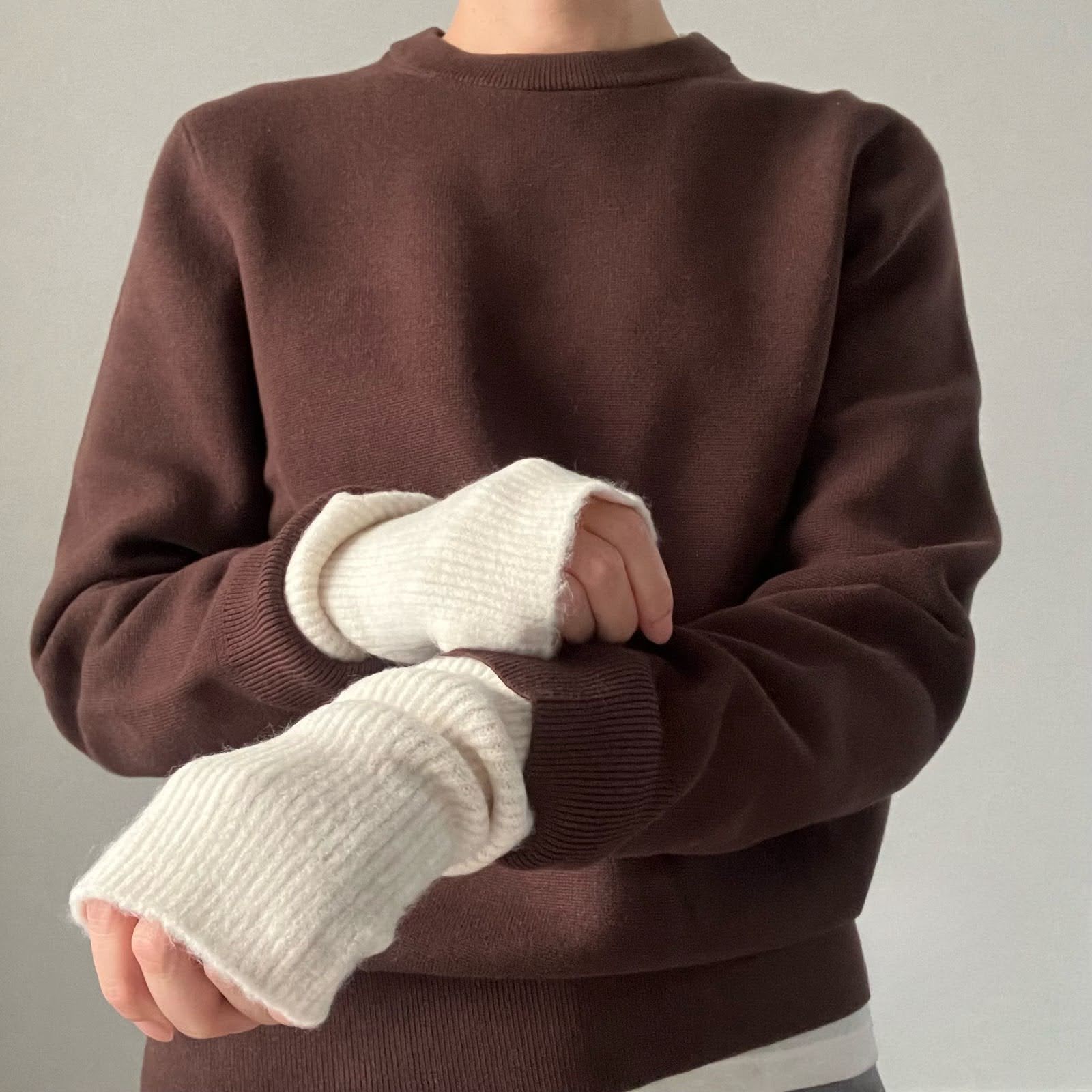 一緒に買った、同色のスフレヤーンニットアームウォーマーを重ね付けしても可愛かった♪