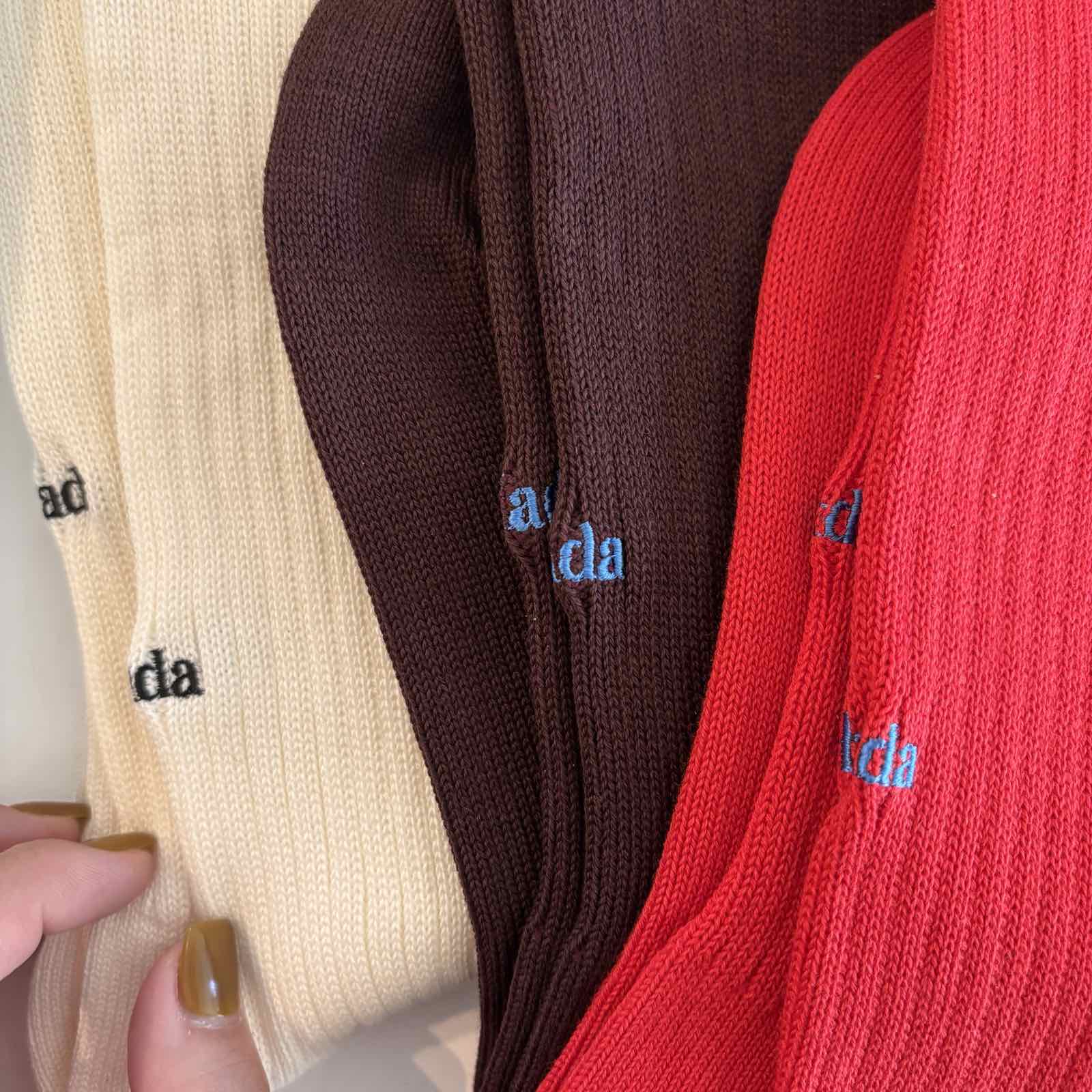 100通り以上あんねん(笑)というあの言葉のように調べてみると、赤は40色以上!このソックスの赤、沈んでいなくてイイ。シューズとパンツの間(3cm)の隙間で見えたときに、キュンとなれる赤。意外にこんな赤です!という控えめじゃないリブソックス、少ないと思うんです。赤の40色を1個1個見たんですが、これ「カーマイン」という赤に近いかも!(細か^^)(でも色みるのって楽しい)