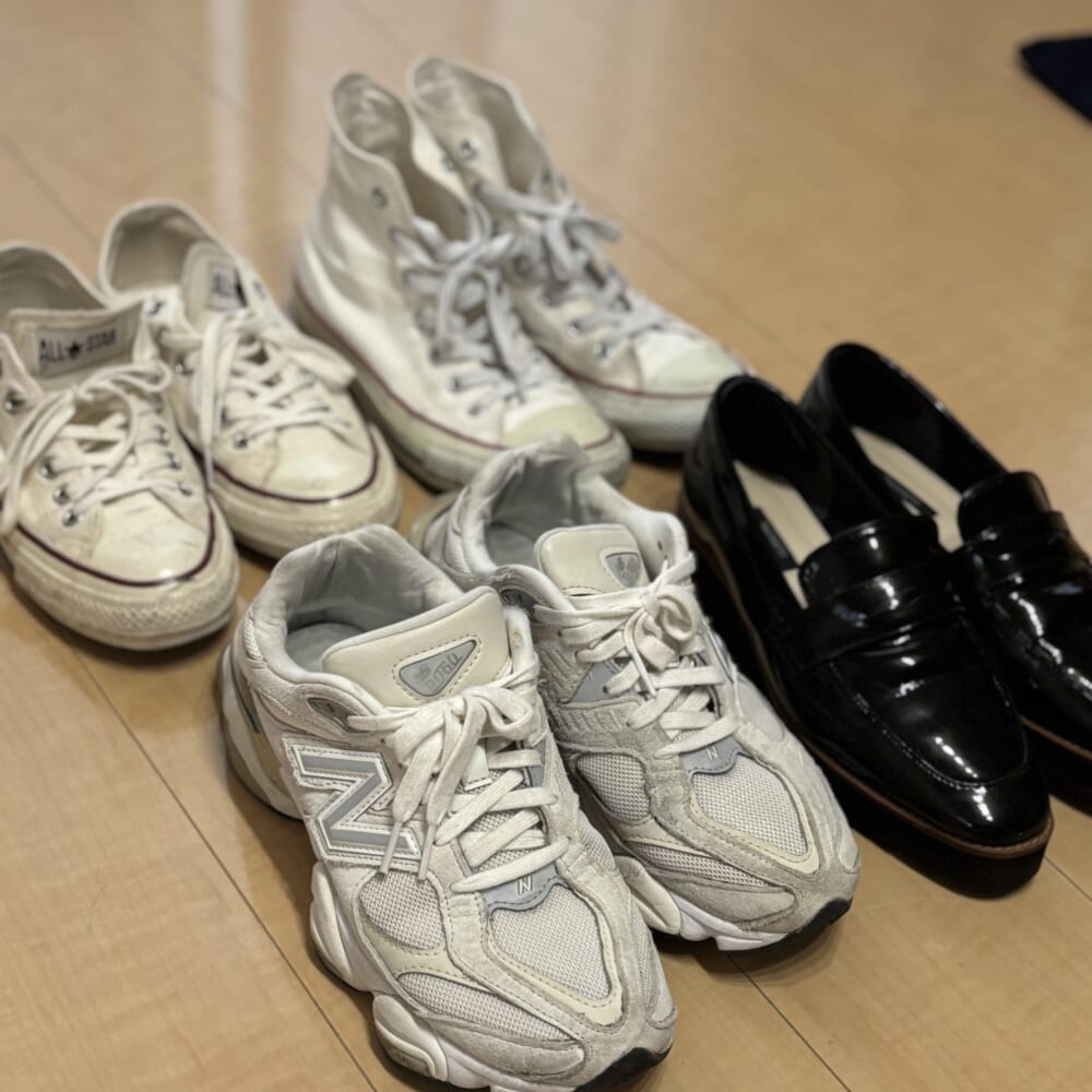 写真の私は、スニーカーで遊びを入れつつ、きちんと仕上げたい日はローファーにチェンジ。この“足もとスイッチ”が思いのほか気分転換になりそう。