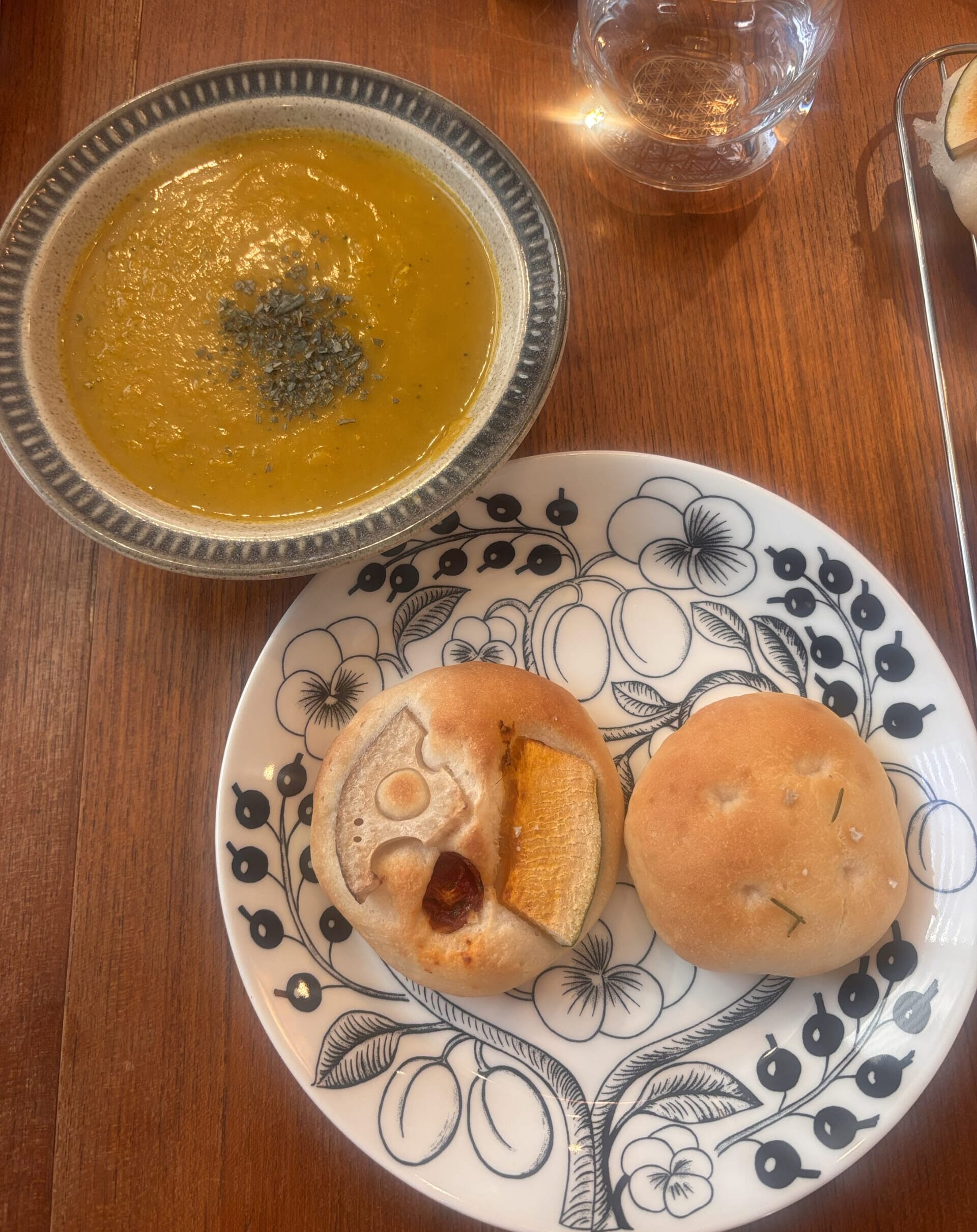 福島先生が作ってくれた かぼちゃのスープと一緒に。