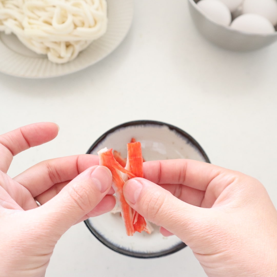 カニかまはほぐします。子どもと一緒にやっても楽しそう♪