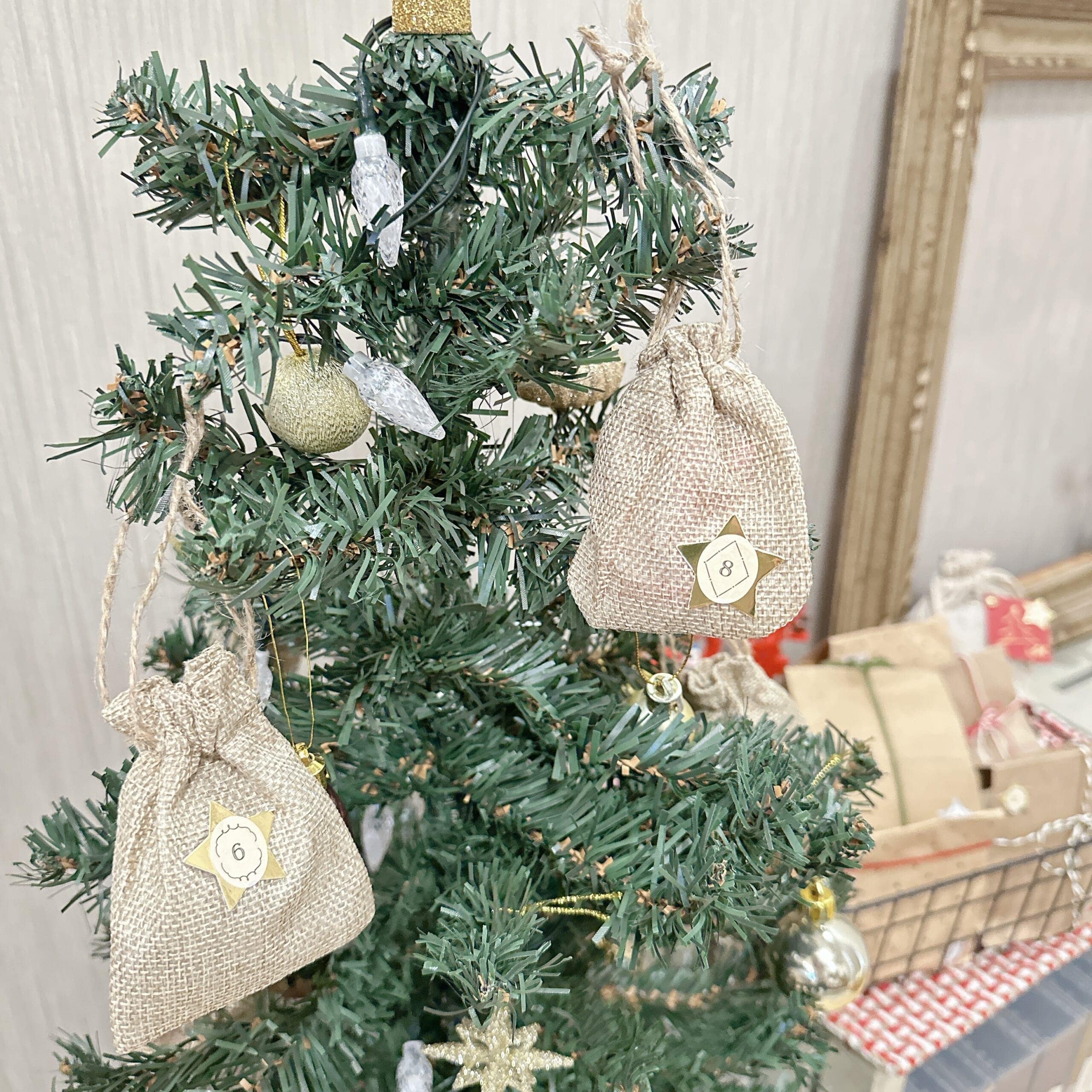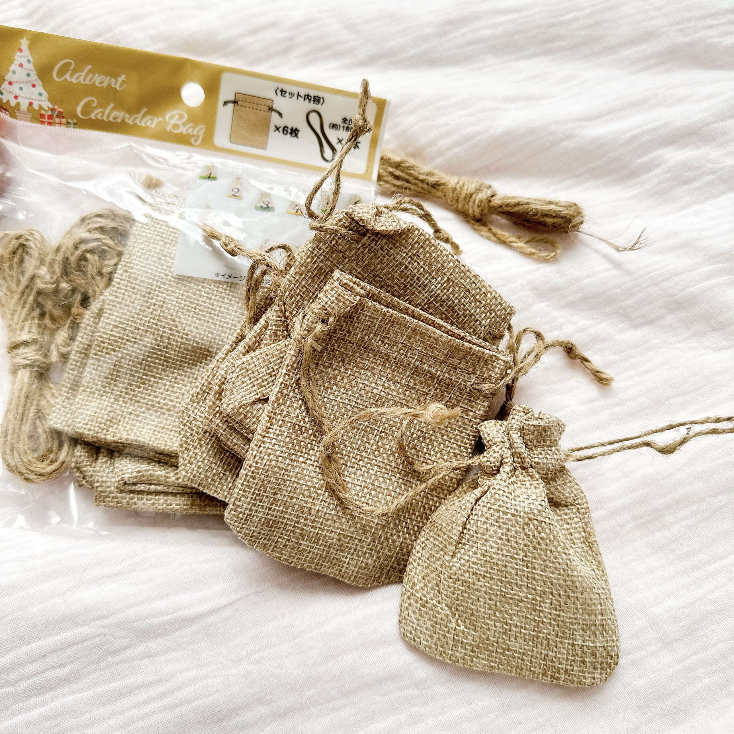 クリスマスグッズコーナーで見つけた、アドベントカレンダー用の麻袋!