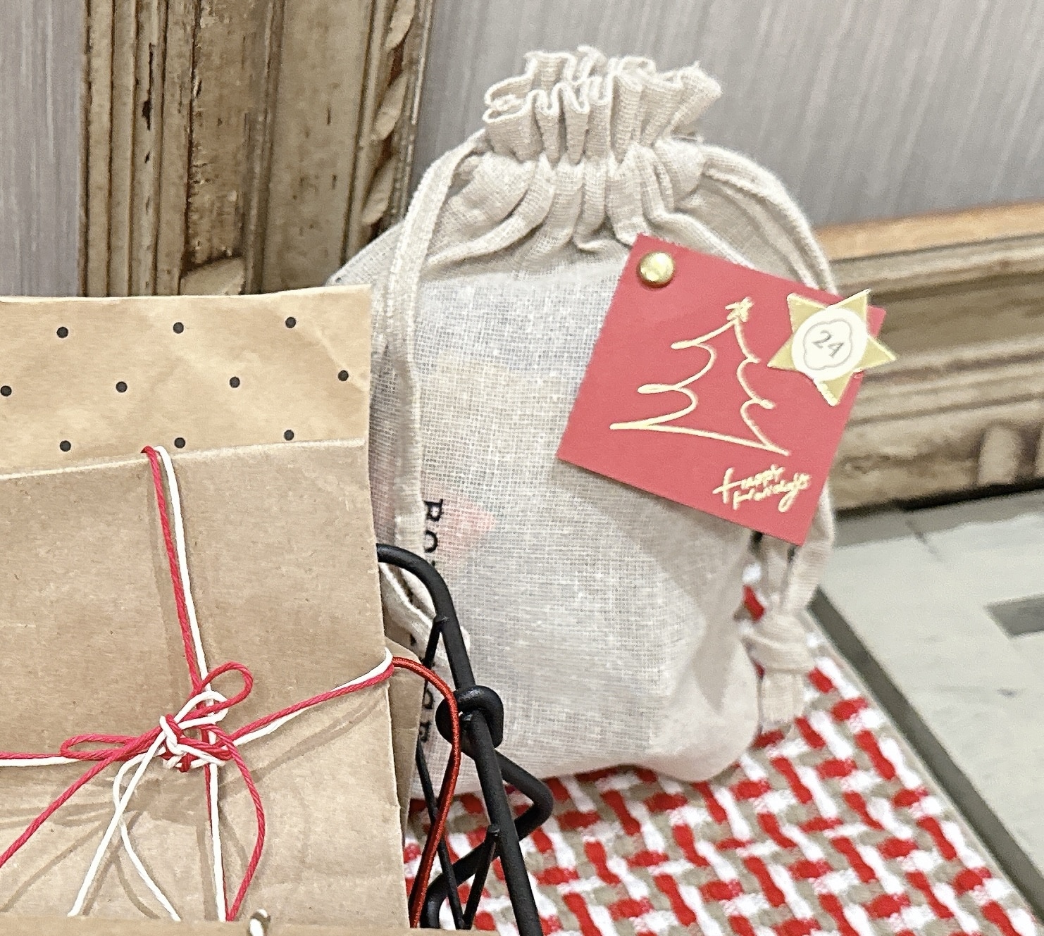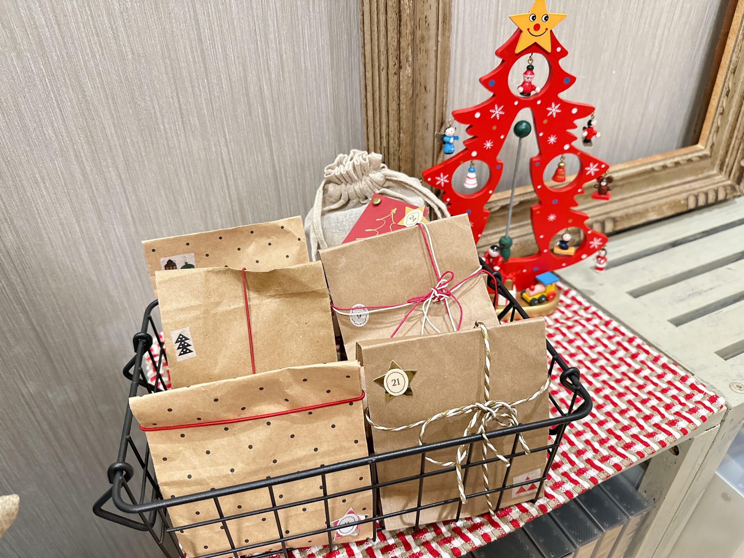 なので、12月21日からは、クライマックス感が出るように、お菓子もちょびっと豪華にしてクラフト紙の紙袋に入れることに。