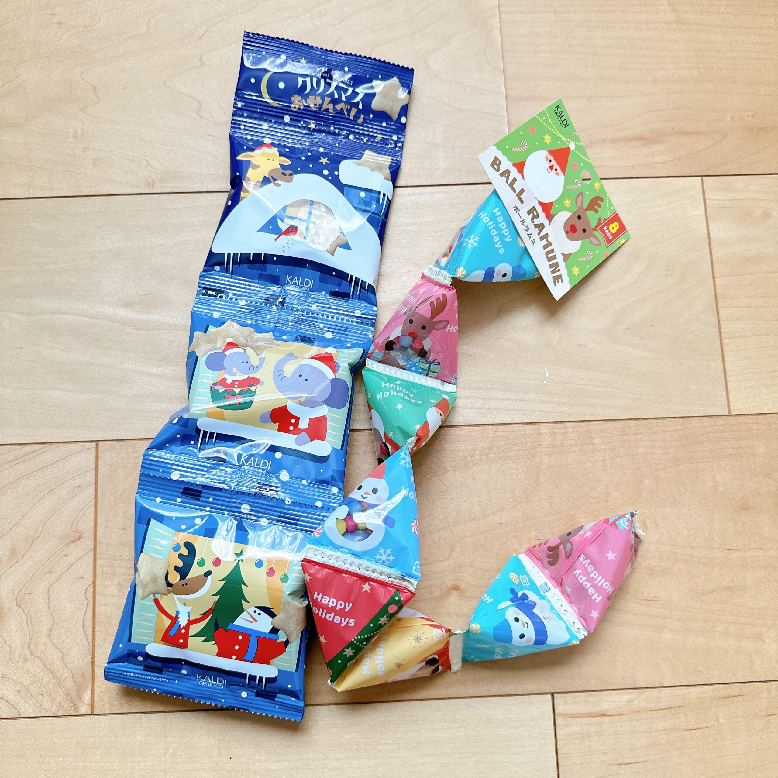 また、セリアに行く前にカルディで調達していたこちらのお菓子も入れてあげたいと考えていました。